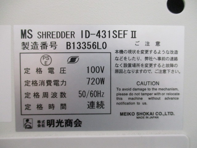 【中古】 MS-ID431SEF 明光商会 シュレッダー 184904