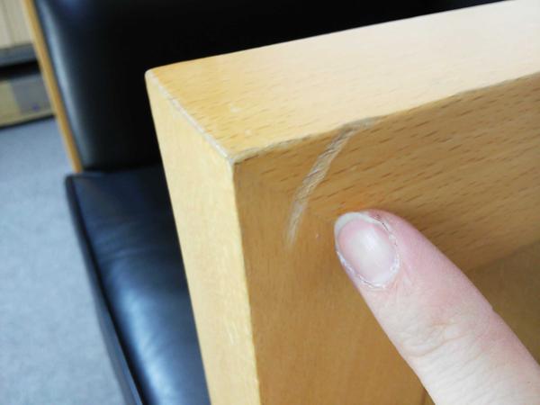 - 目立つ箇所ありソファの場合、破け、ホツレ、へたり、しわ等が多数または深い破け、ホツレ、へたり、しわ等一部ある。(例、背もたれ、肘かけ、座面等にある。)センタ>ーテーブルの場合、傷・凹みが多数または深い傷・凹みが一部ある。(例、天板、脚にある。)