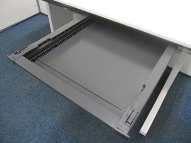 - 地震時、センター引出しが飛び出さないよう、ラッチ機構を装備。脚はデスクの横ズレを軽減させる設計になっています。