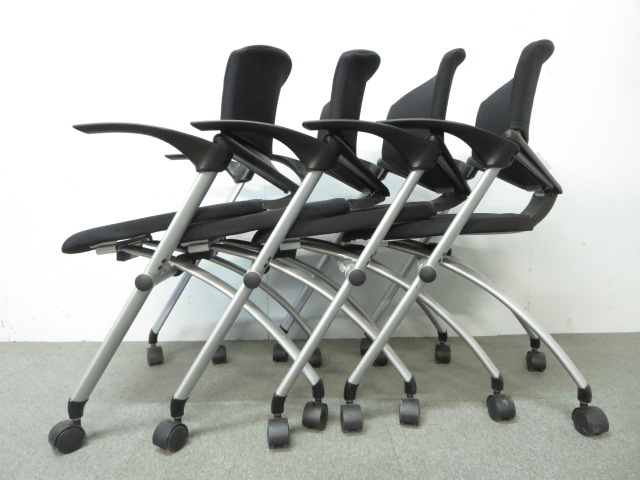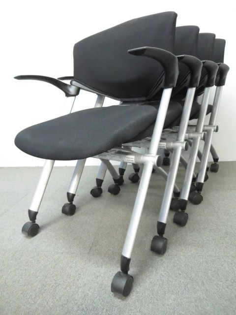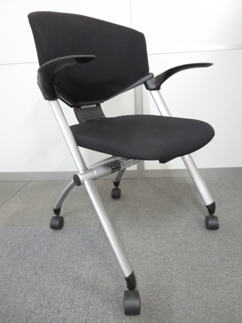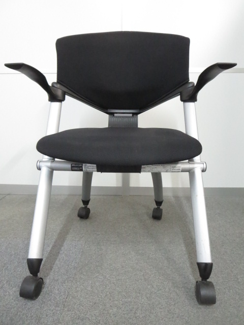 ■コルサチェア(肘付)ブラック ■コクヨ製(KOKUYO)■【背座連動ロッキング付で大腿部への圧迫を減らします!】■【ネスティングチェア】【水平スタックチェア】- 川崎店