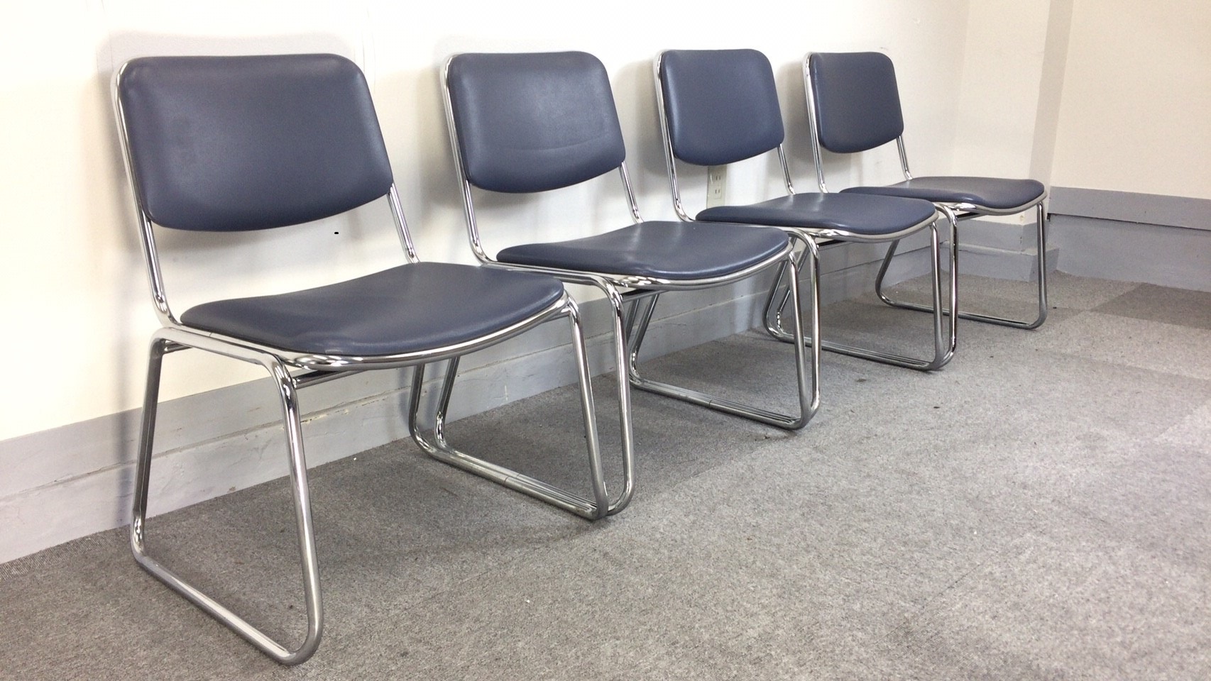 【KS】[お買い得4脚セット][状態良好]THE 会議用椅子 シンプルなデザイン ビニール生地で汚れにも強い[ミーティングチェア]- 茨城南店