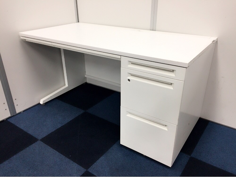 【セットでお買い得!横幅1400の平机と3段ワゴン!疑似片袖机】 オカムラ アドバンス ホワイト 引き出し付き ネオホワイト【収納が欲しいかたにはオススメ】