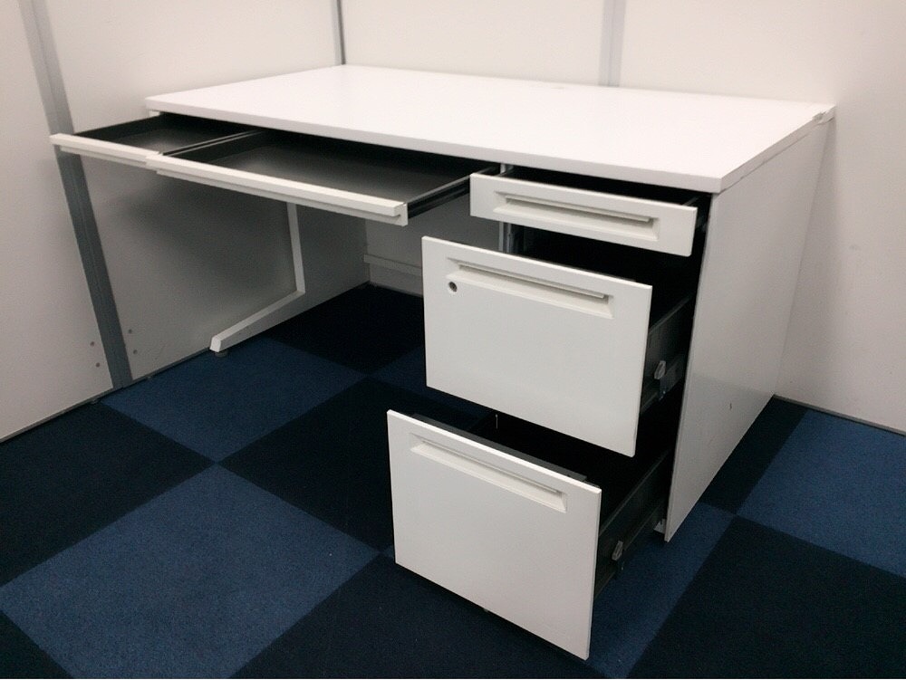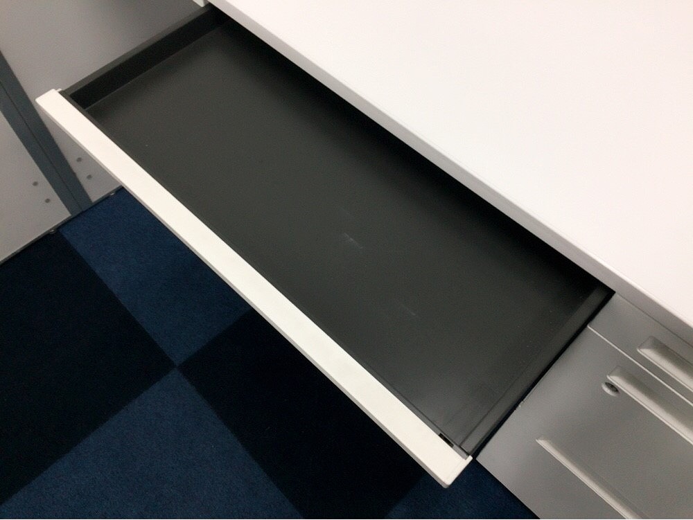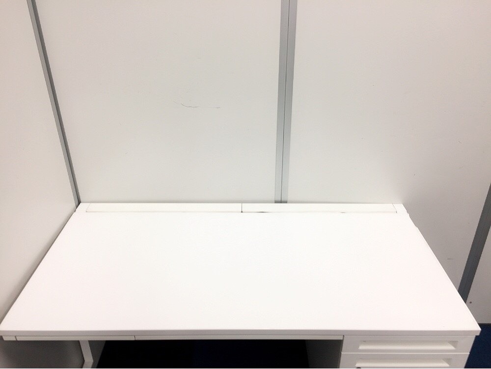 最近人気のホワイトカラーのデスクとなりますので、従来のオフィスデスクとは違い