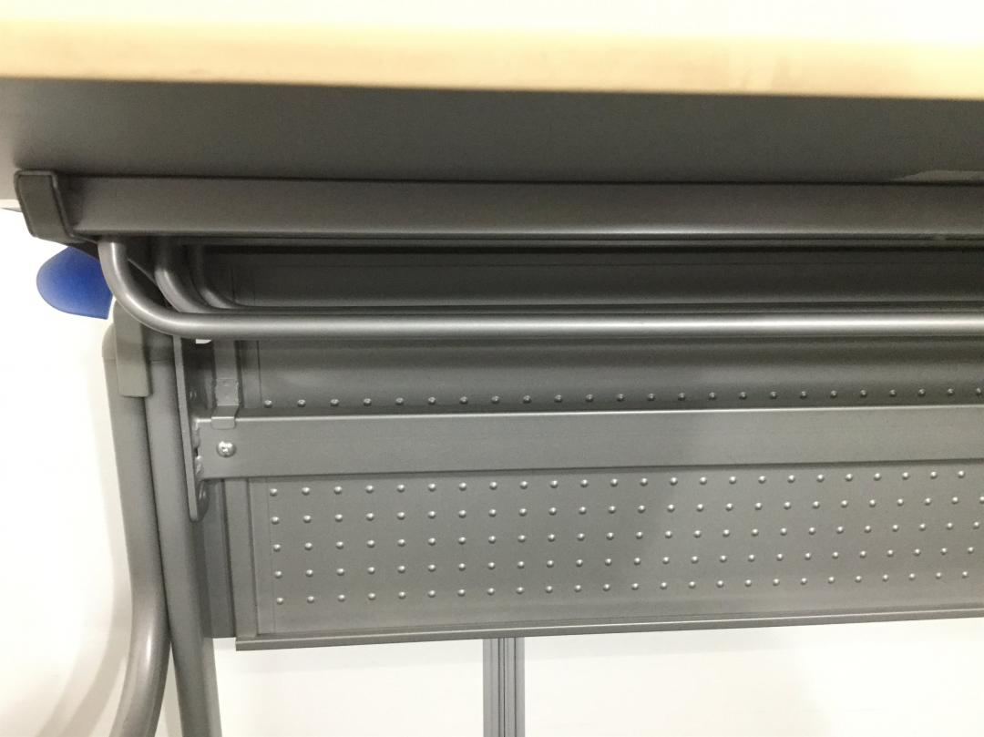 - 一部不具合あり天板歪み、アジャスター無し、キャスター使用不可ようなそのテーブルの本来の効用を果たすための機能以外の一部が使用不可な状態。(例、キャスターロッ ク機能使用不可、棚板無し等がある。)