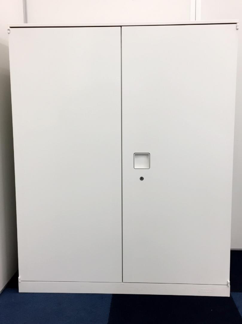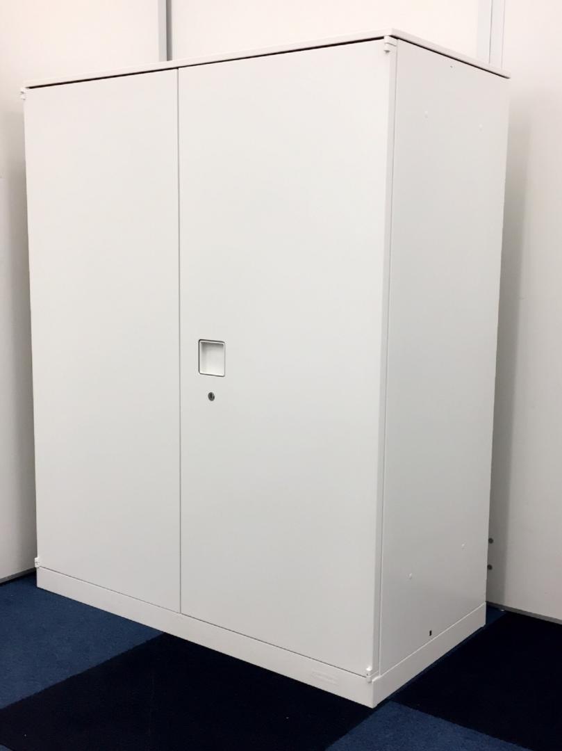 【オフィスの書類をスッキリ整理!取っ手がどの方向からでも開くマルチハンドルが人気!】■オカムラ(okamura)製 レクトラインシリーズ ローキャビネット 両開き書庫 H1250㎜ ■ホワイト ■シリンダー錠