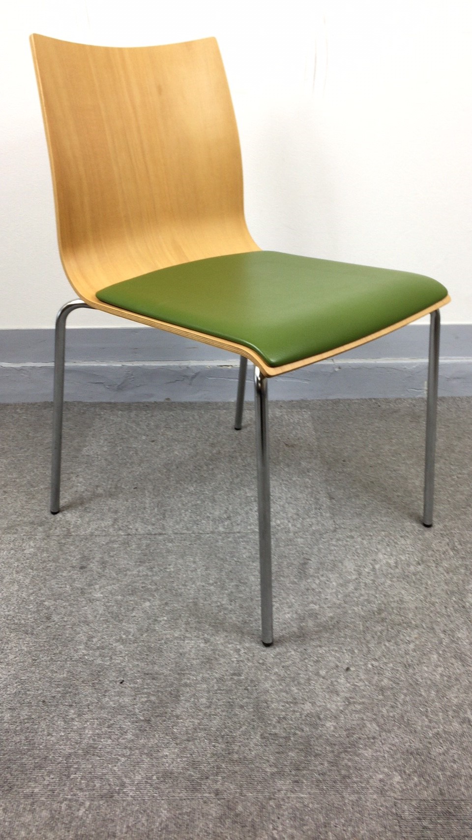 【KS】[雰囲気GOOD]木製ミーティングチェア 座面ビニールレザー製のクッション付きでお尻が痛くなりにくいです- 茨城南店