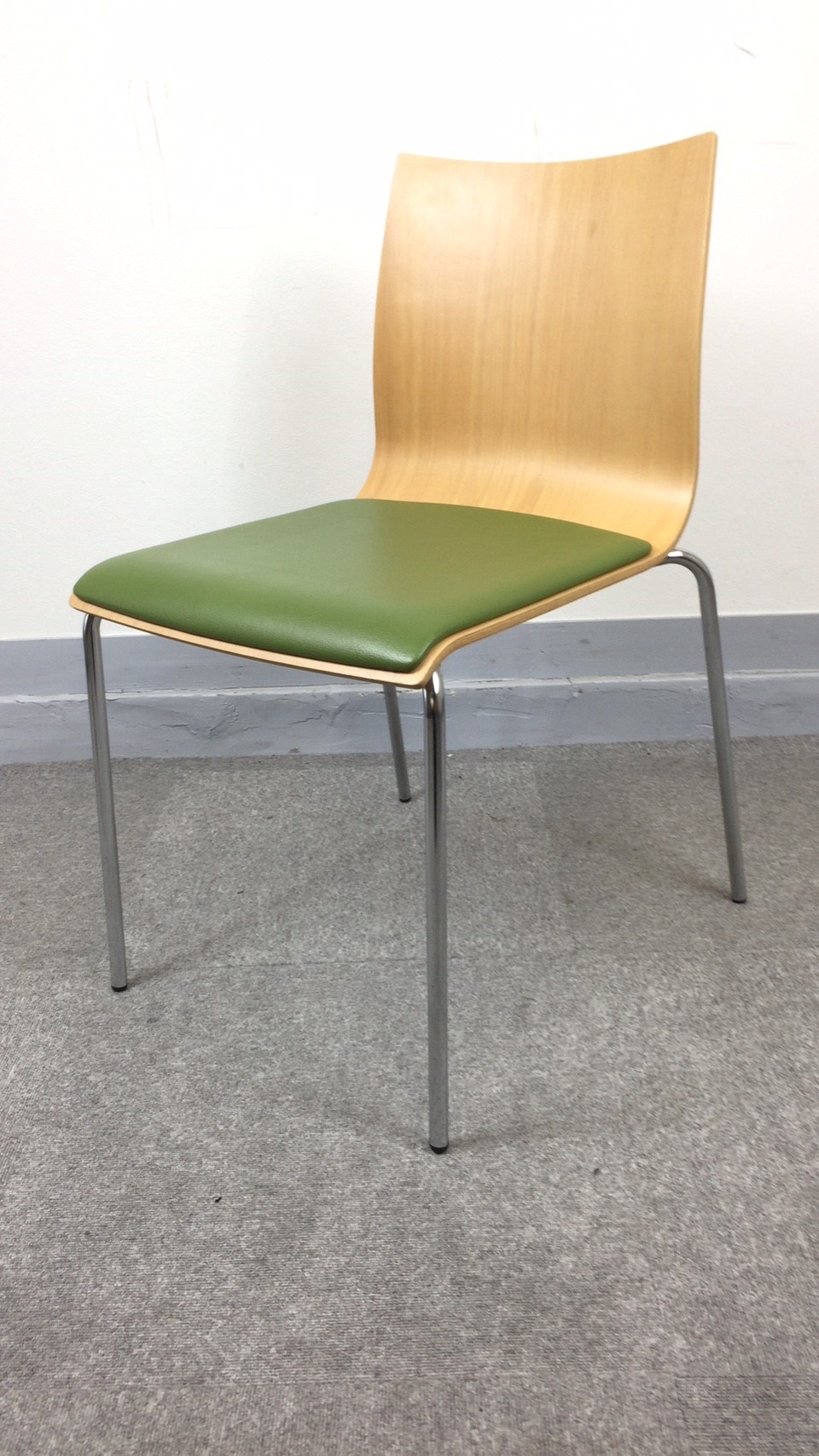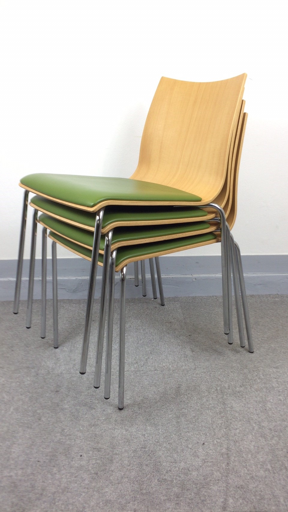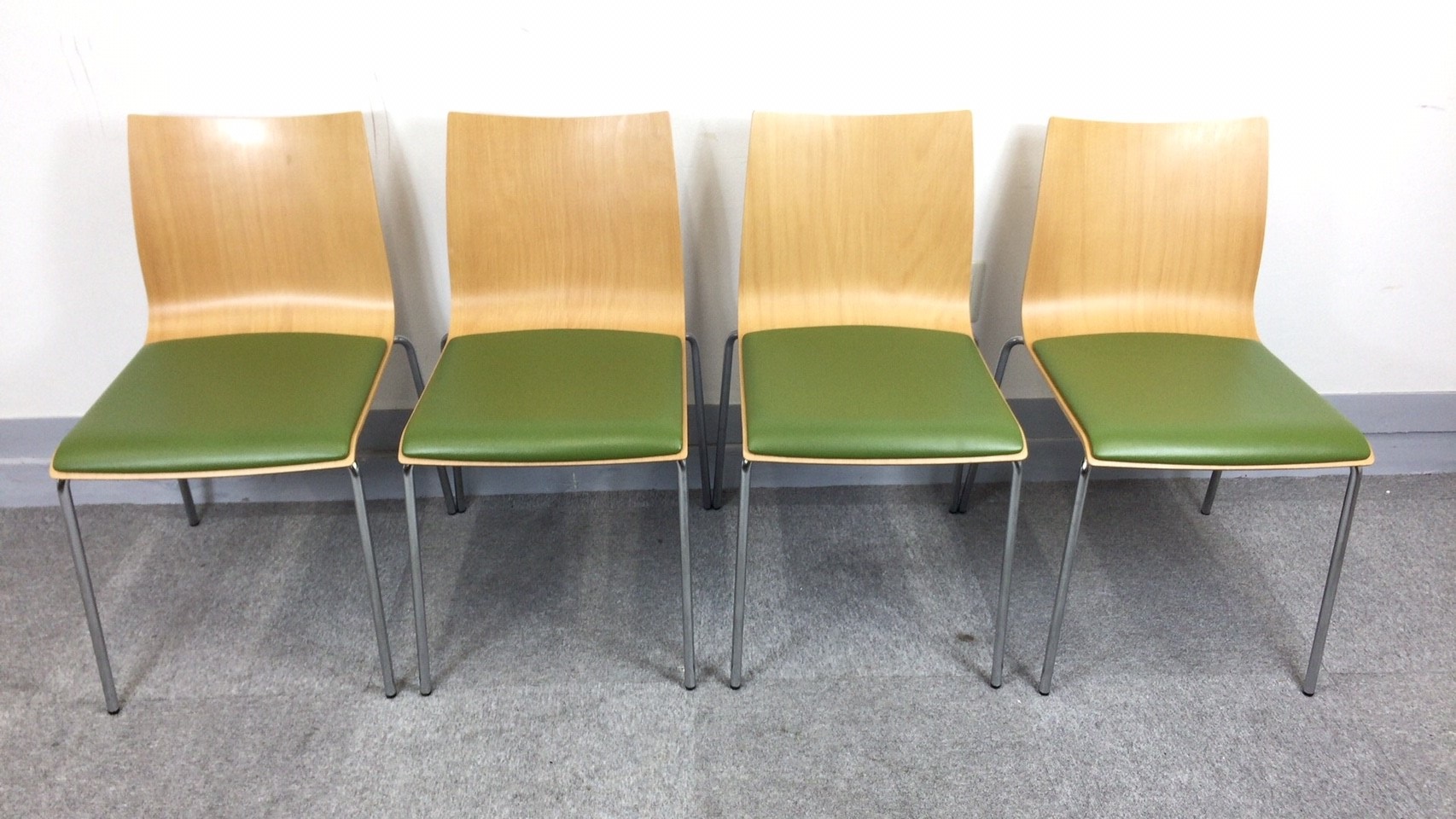 【KS】[状態良好][4脚セット]内田洋行 木製 ミーティングチェア[座面はビニール生地でお手入れ簡単]- 茨城南店