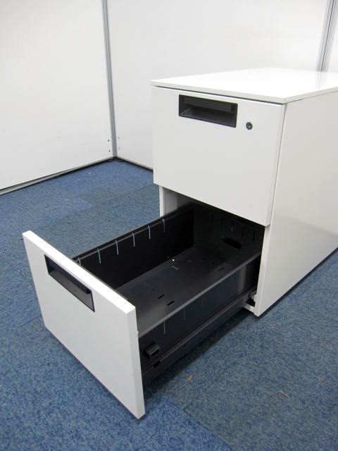 【SOHO】フラットライン 2段ワゴン カラー:ホワイト【取っ手のブラックがアクセント】- 品川・三田店