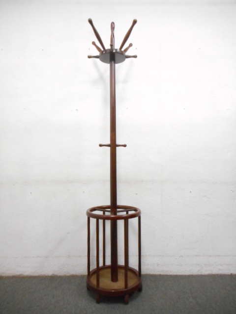 ■木製コートハンガー ブラウン ■傘立て付・ポール型タイプ【Najico】- 川崎店
