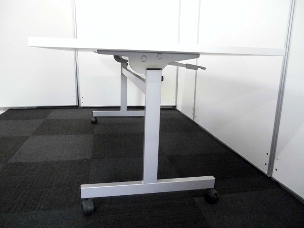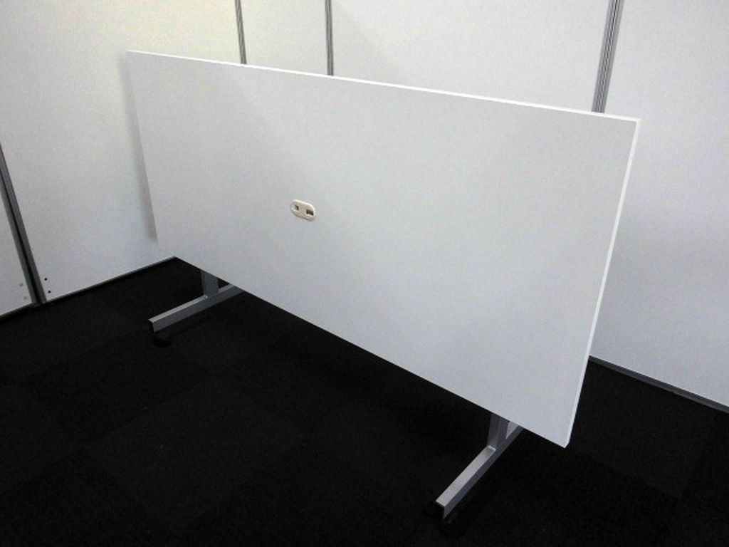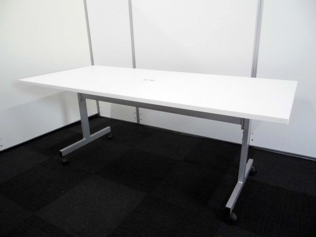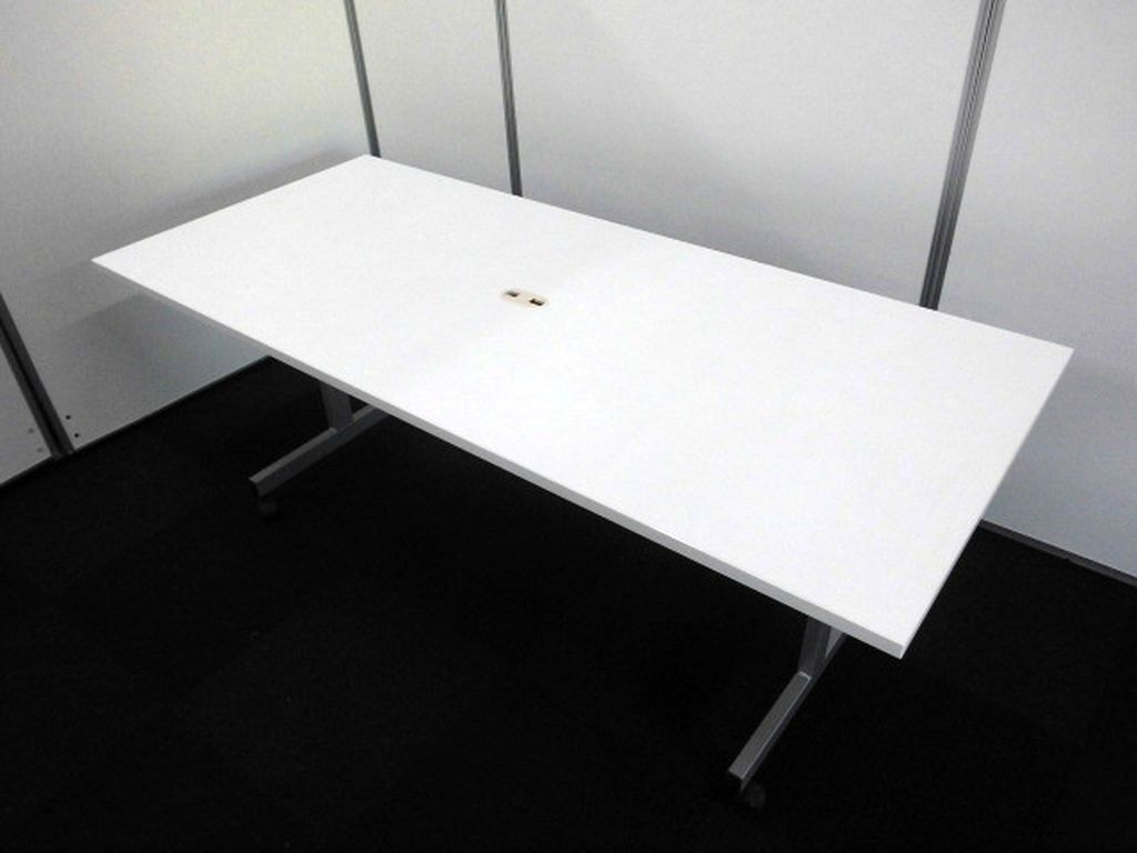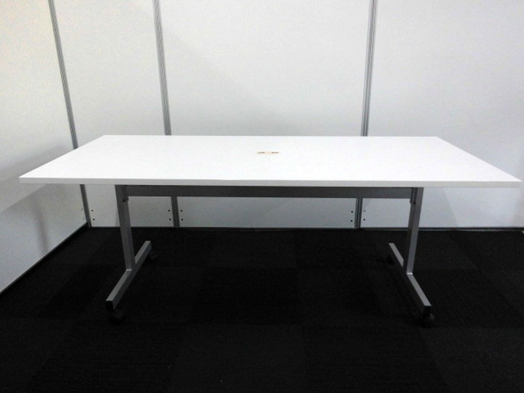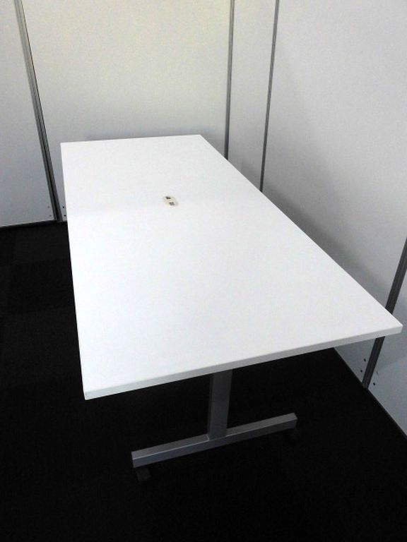 【スタック機能付き】キャスター付のミーティングテーブル|ホワイト【配線タップ付】- 立川・八王子店