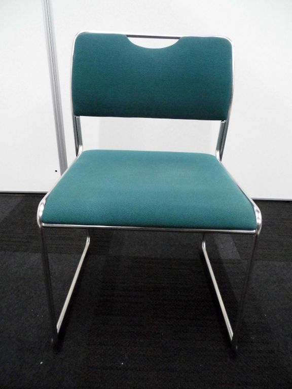 【シンプルチェア】イトーキ製|スタッキングチェア|グリーン|持ち手付で便利- 立川・八王子店