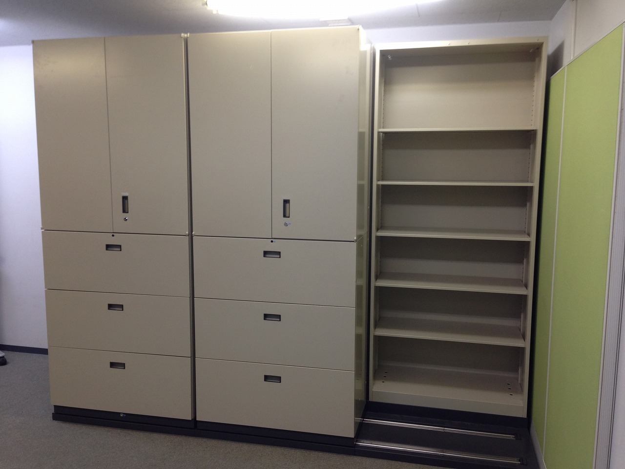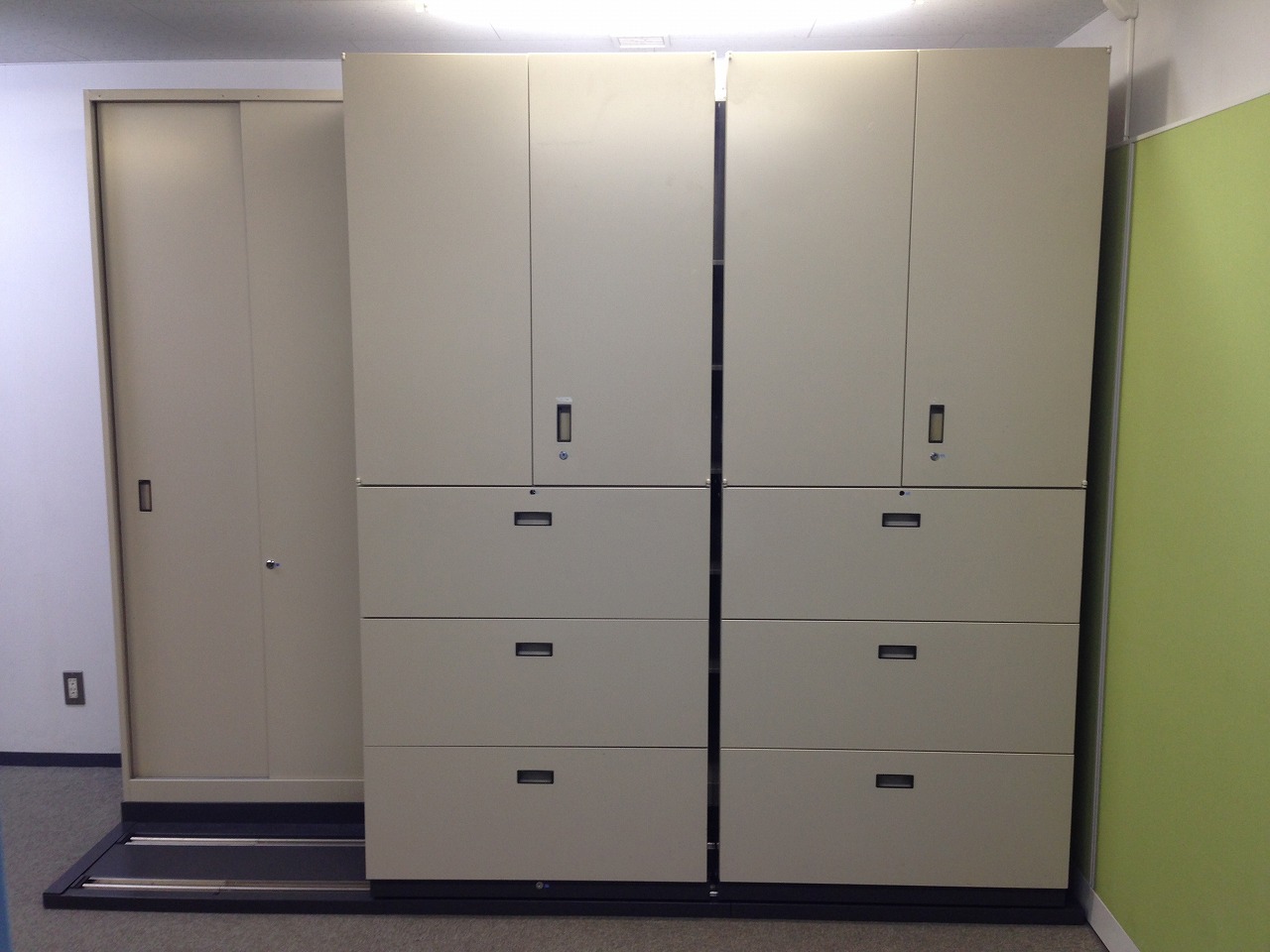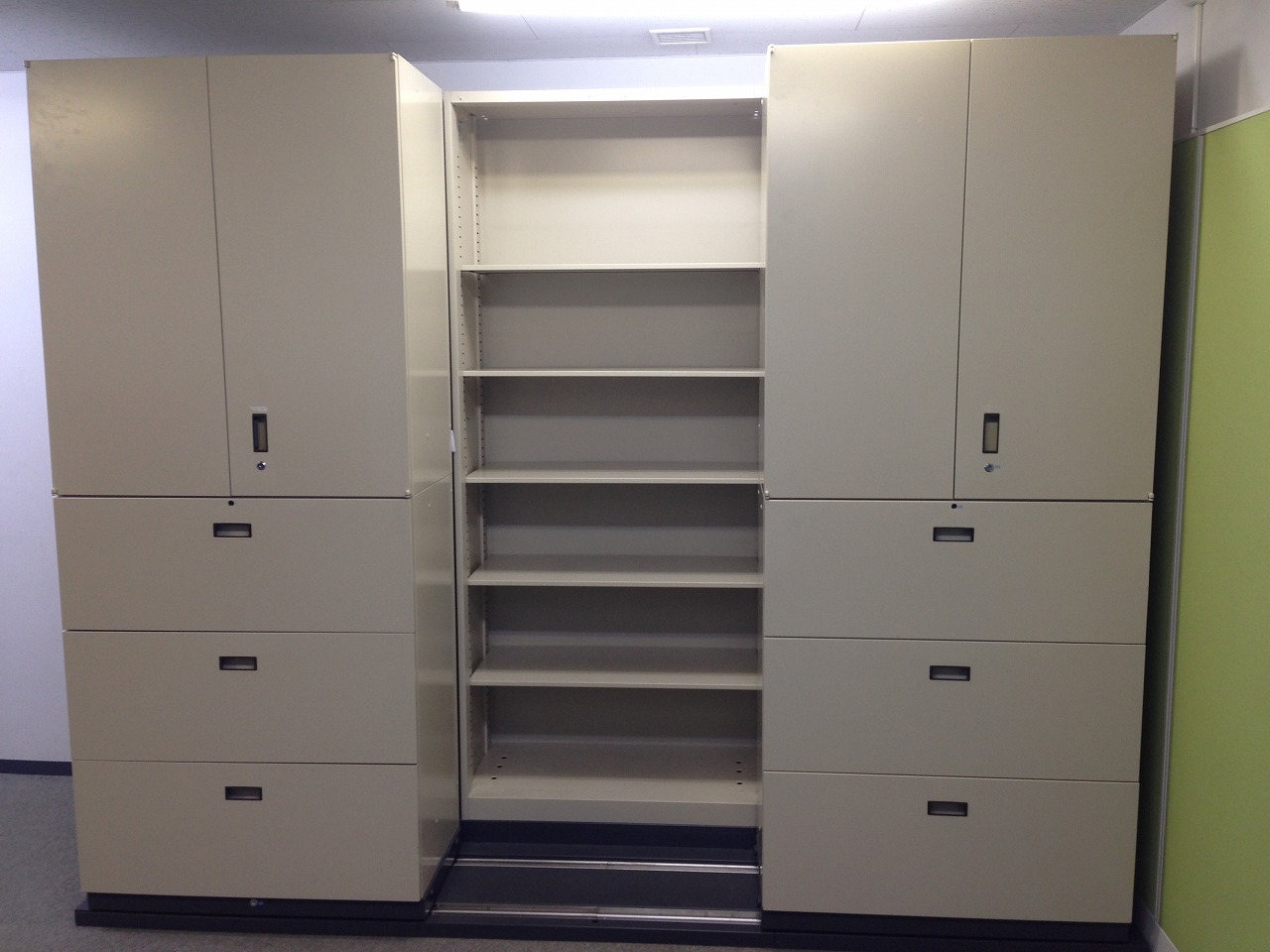 前2列(両開き書庫×3ラテラル書庫+両開き書庫×3ラテラル書庫)