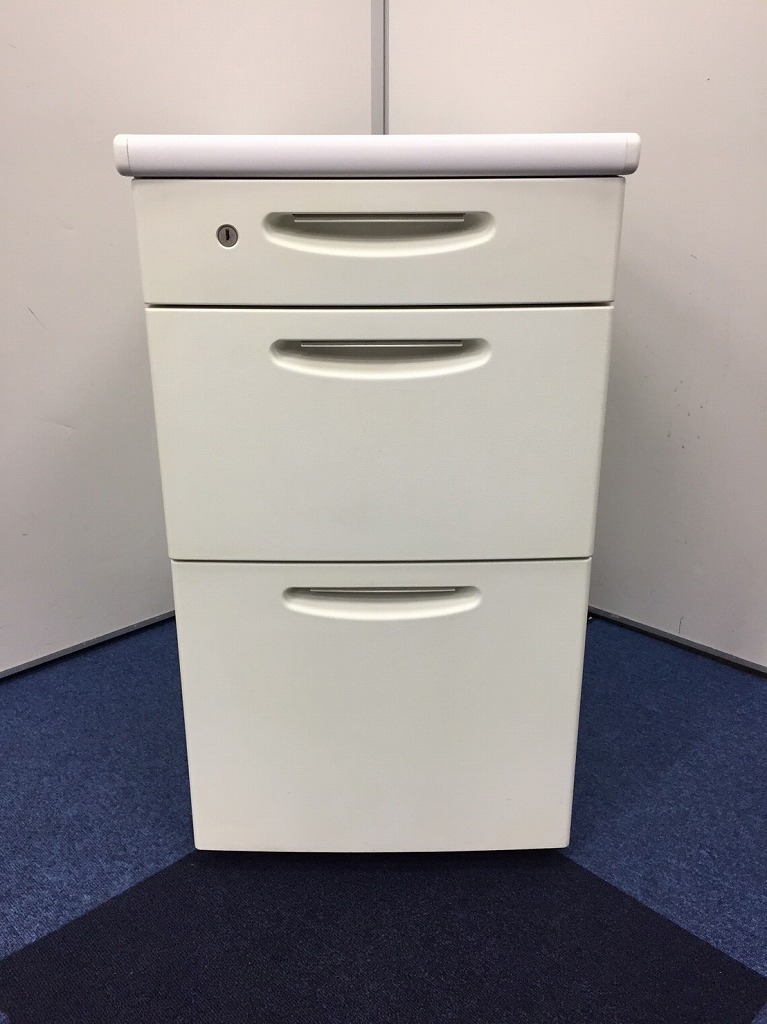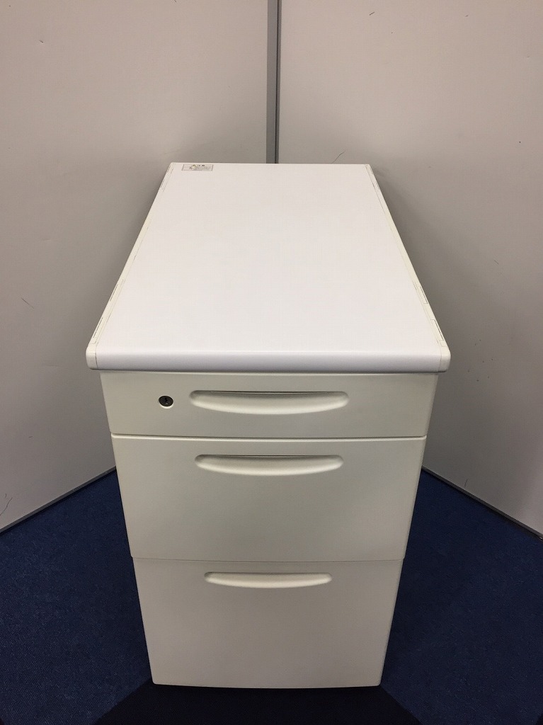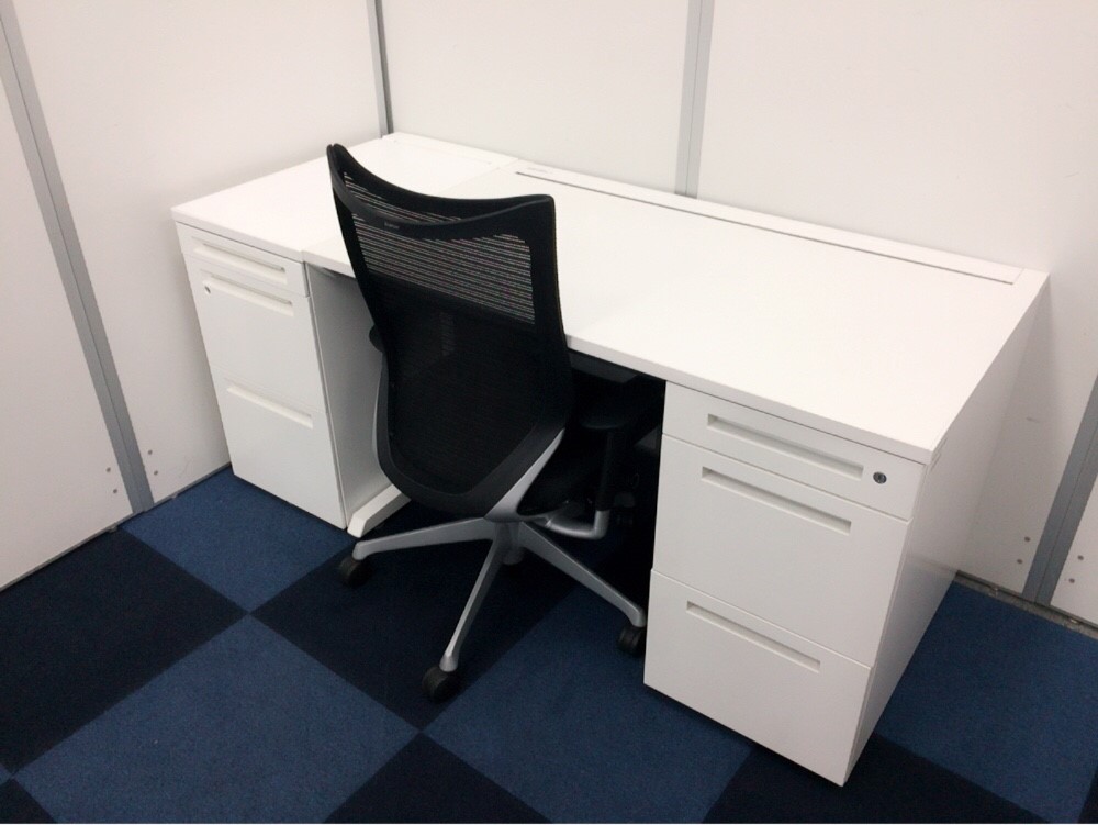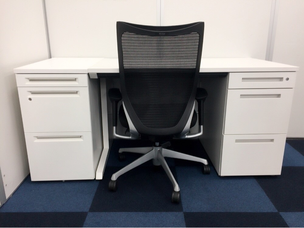 人気のホワイトカラーの疑似両袖机です。