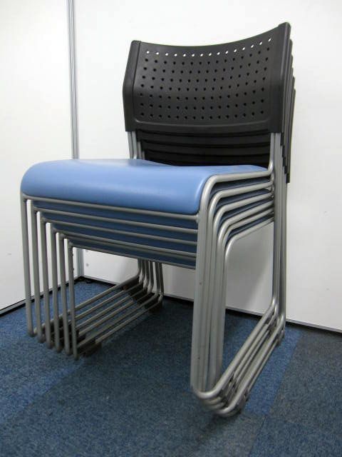 【ビニール座でお手入れ楽々】ループスタッキングASL カラー:ブルー【6脚在庫】- 品川・三田店