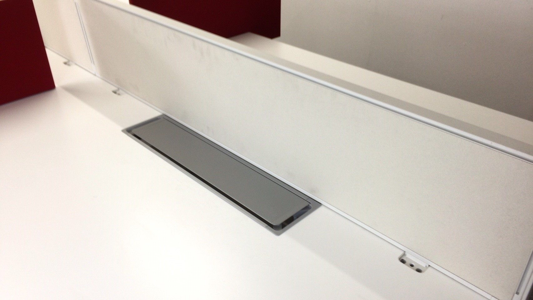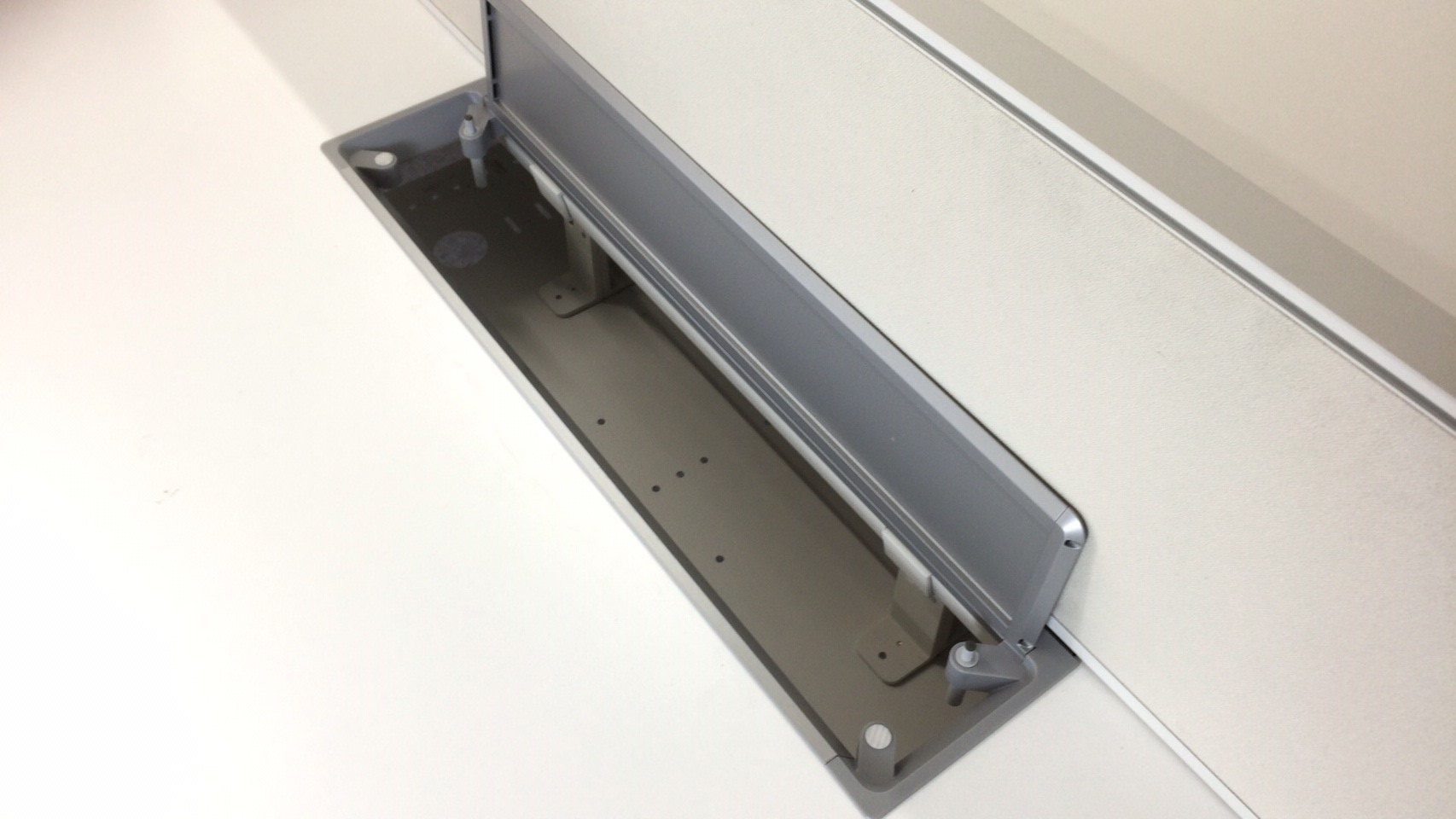 デザインの中にも効率化を図れるよう、天板部には大型配線ダクトが付属し、