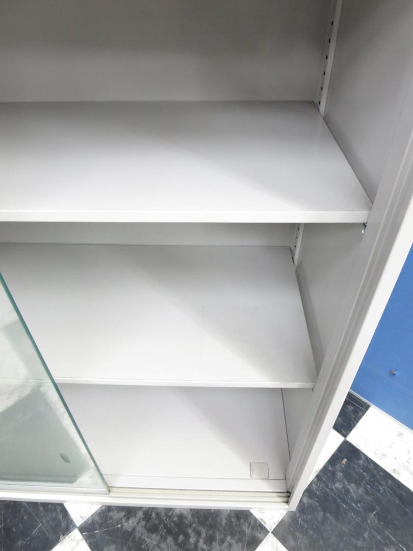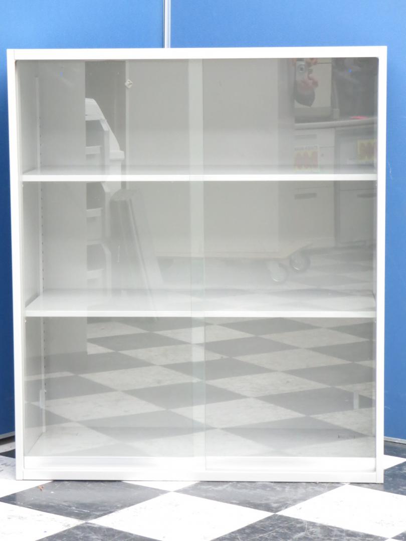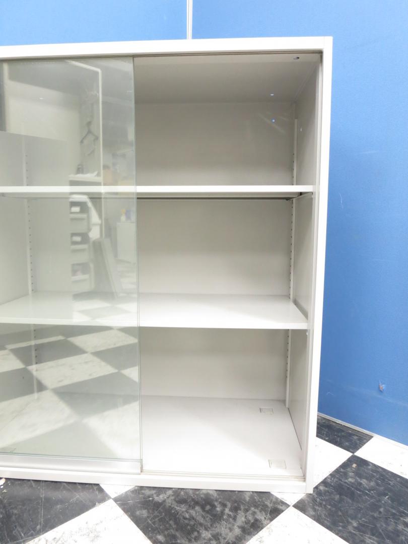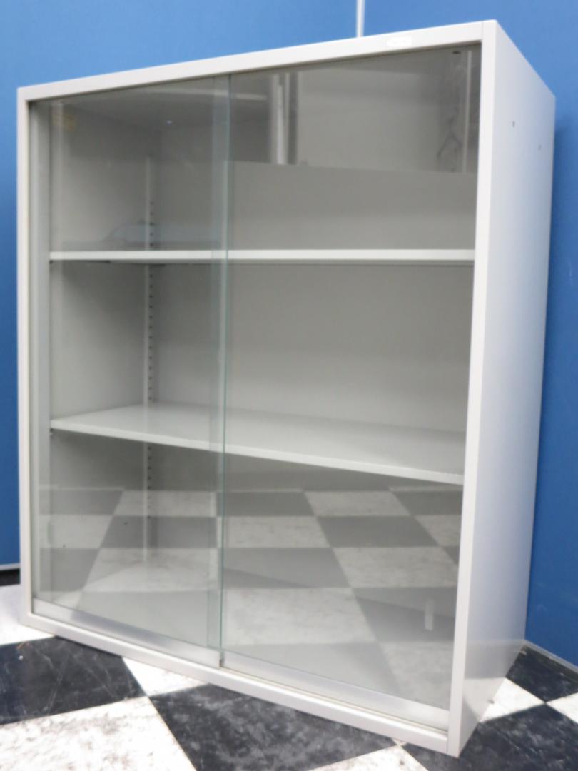 内田洋行製、使い勝手抜群のガラス引き違い書庫です。
