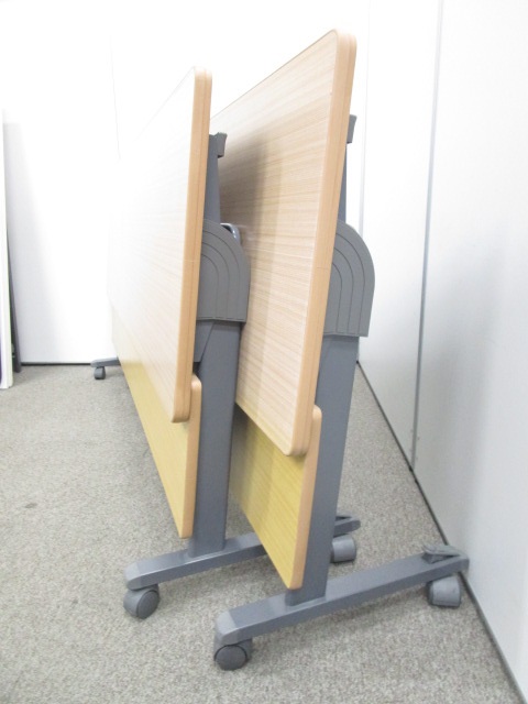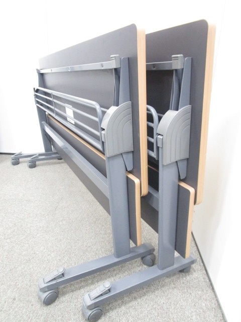 【2台セット割引10%OFF!1台8820円!!】【レア商品!】天板から幕板まで木目調の癒し系ステックテーブルです!|フラップテーブル|ミーティングテーブル- 池袋店