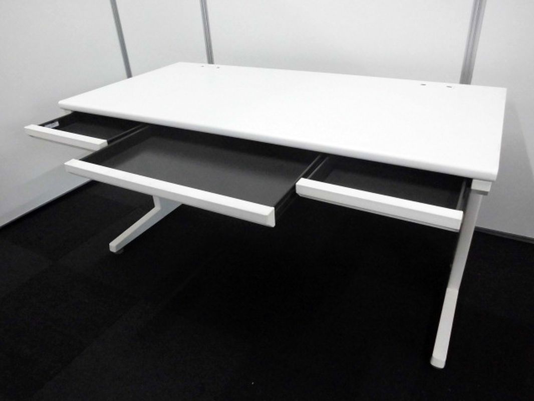 【在庫入替品】【ワークスペース広々!幅1400㎜のホワイトカラーの平机!】■オカムラ(okamura)製 ヴィラージュ(VILLAGE)デスク 平机 引き出し付き W1400×D700mm ■ホワイト【T12】