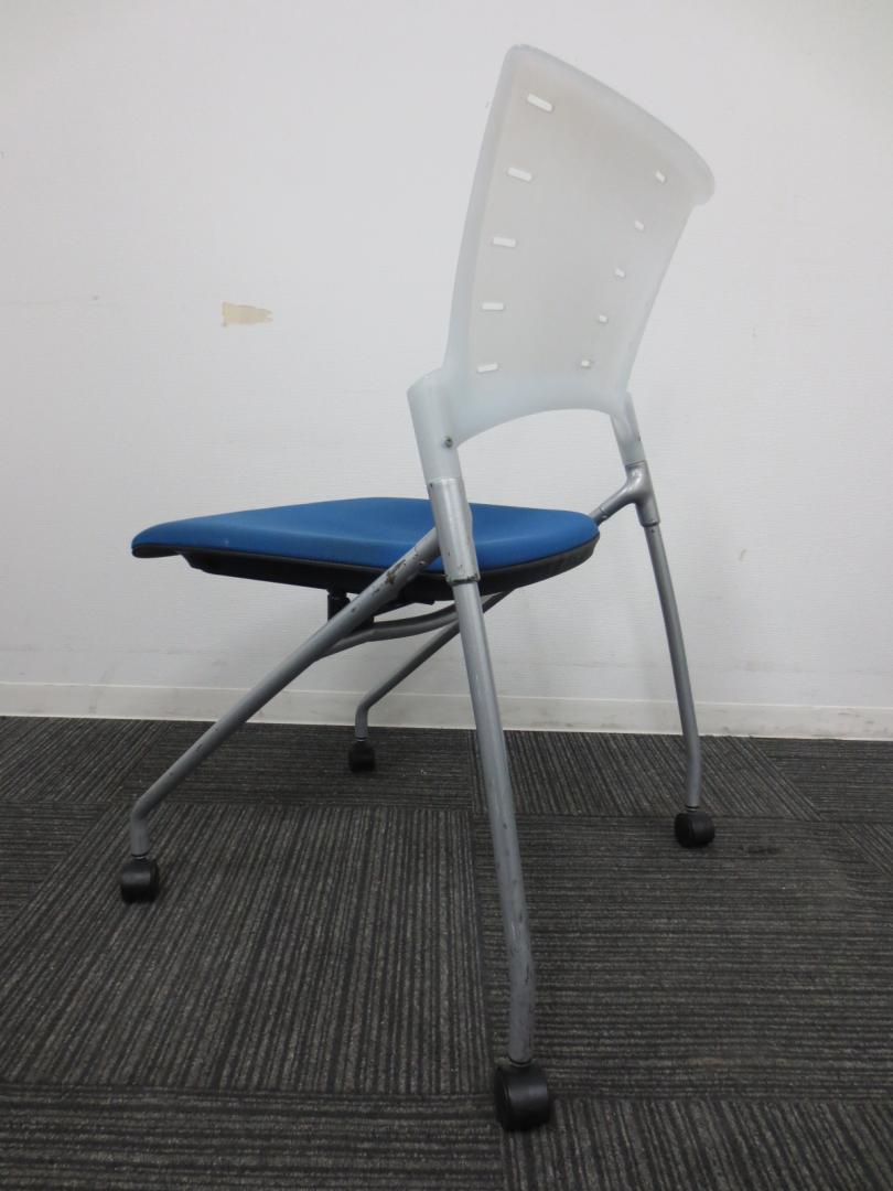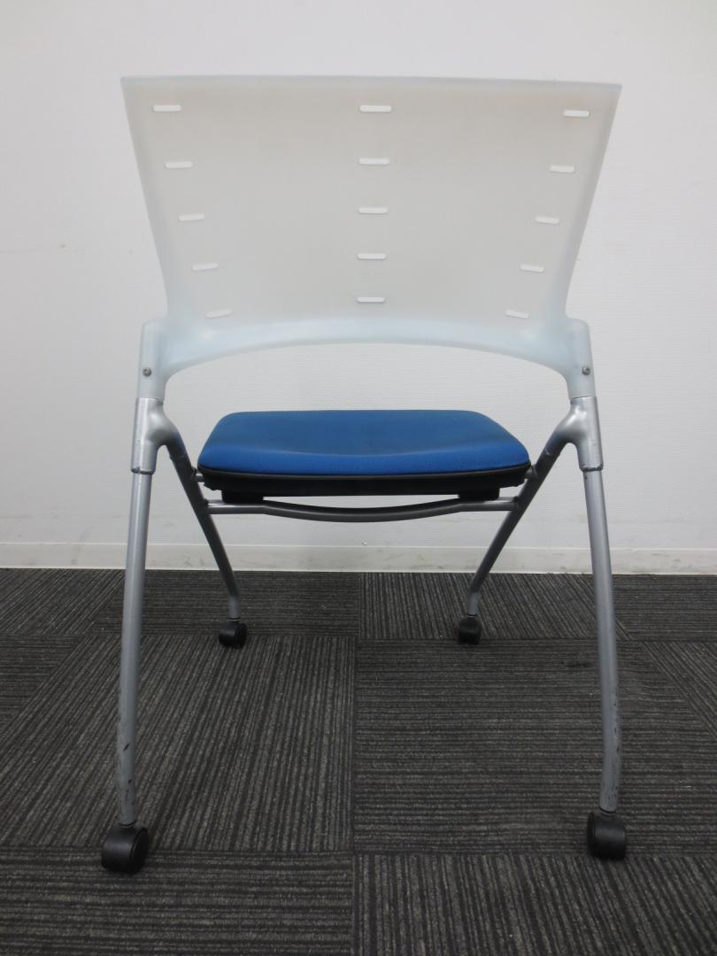 【定価6万円】【ソフトベンディングシェルが背を優しく受け止める!】■イトーキ(ITOKI) マノスチェア(MANOSS) 肘無し スタッキングチェア ミーティングチェア ■背パッド付 ■キャスター脚 ■ブルー