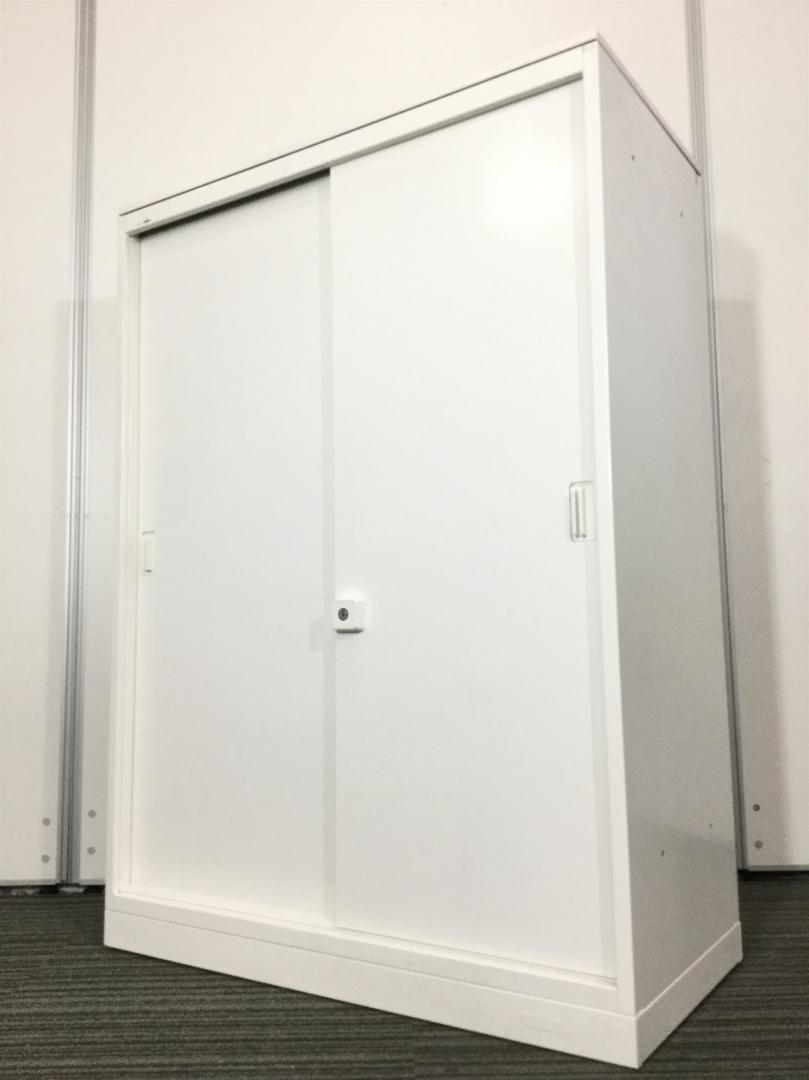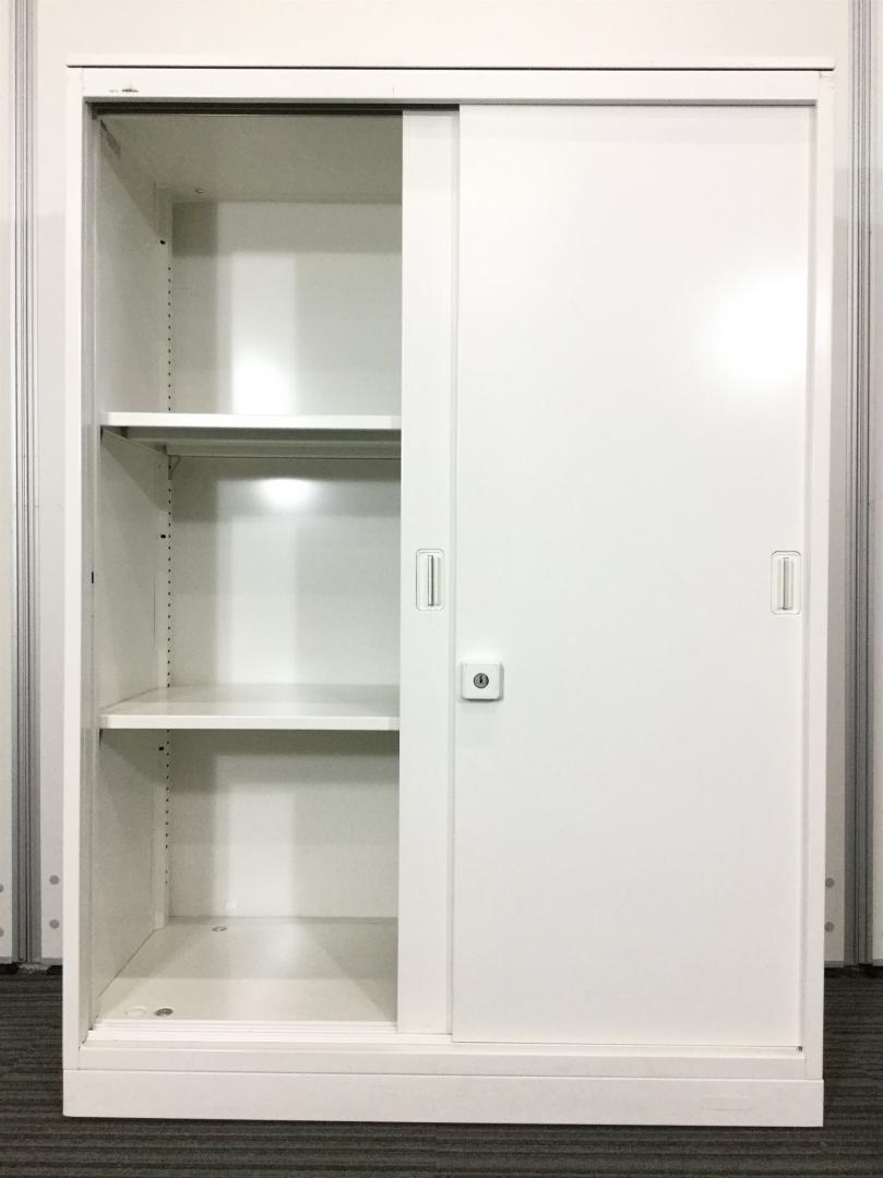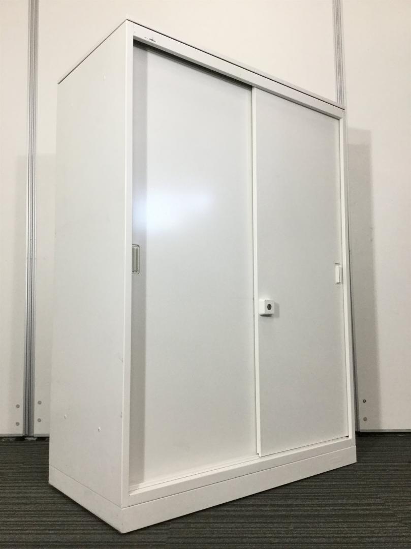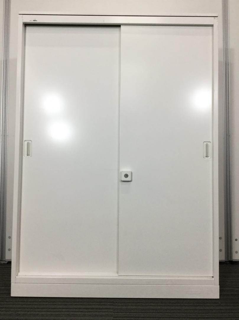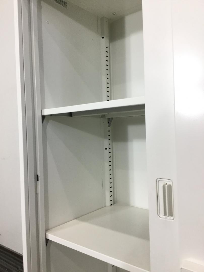2枚引き戸書庫 オカムラ レクトライン 鍵付き シリンダー錠 ホワイト 天板無し スライド式の扉のため導線を邪魔しません