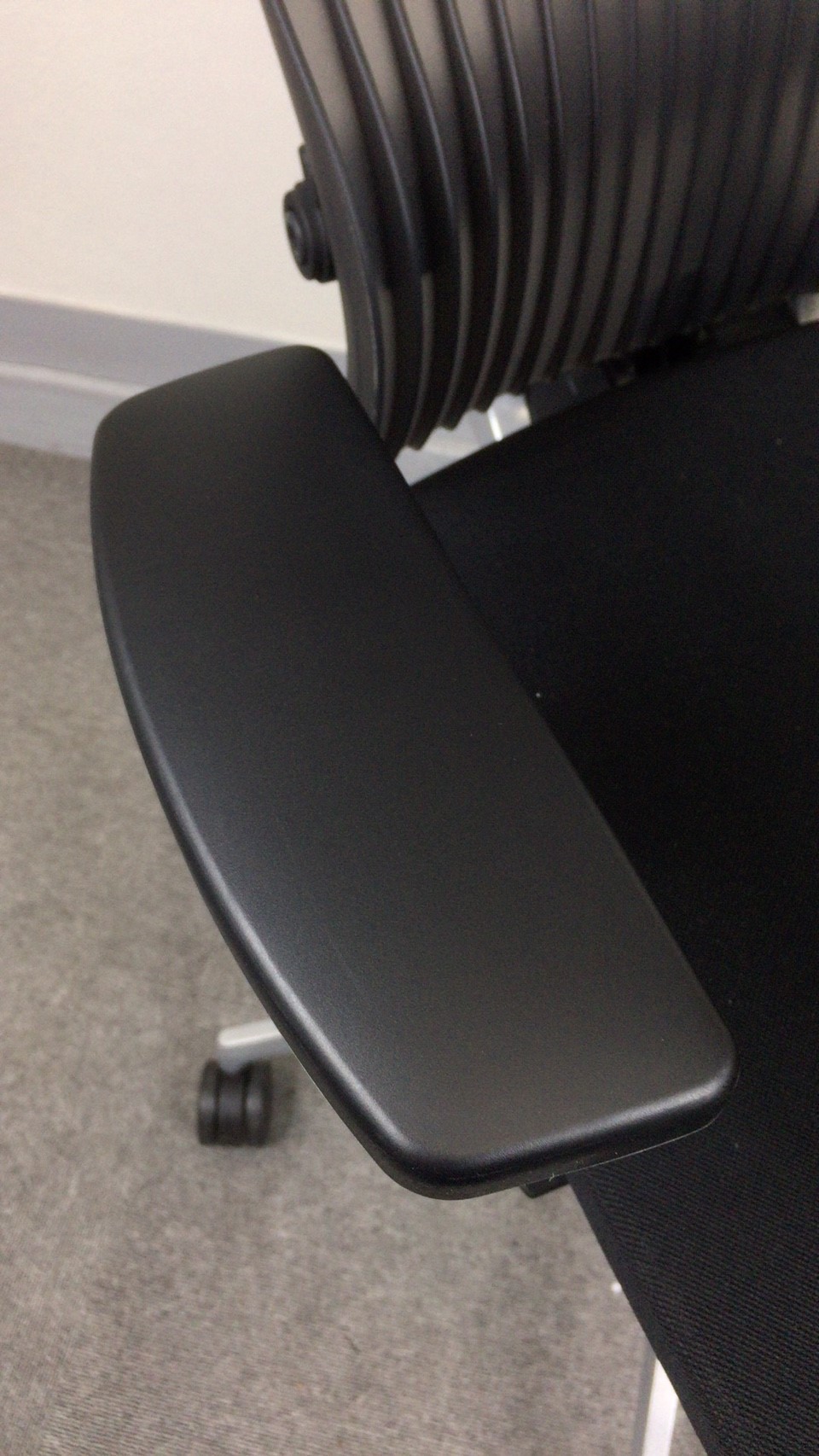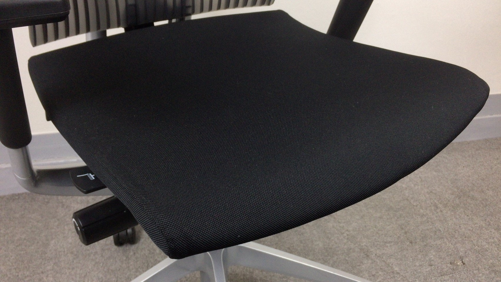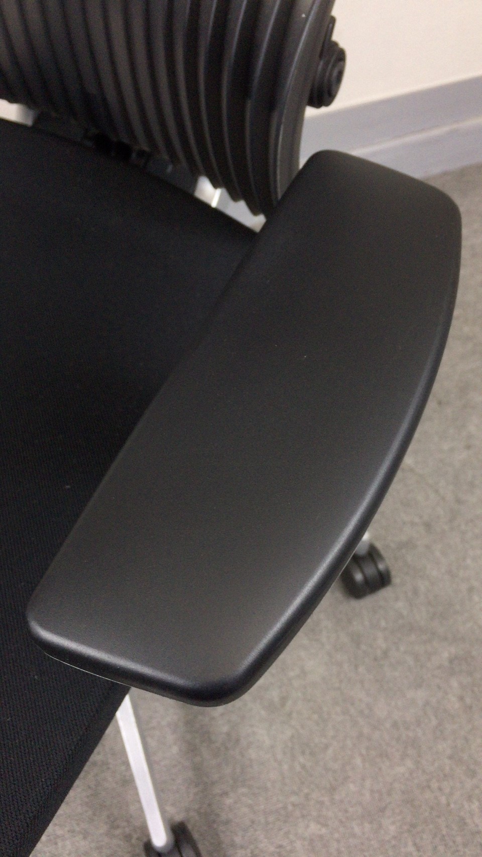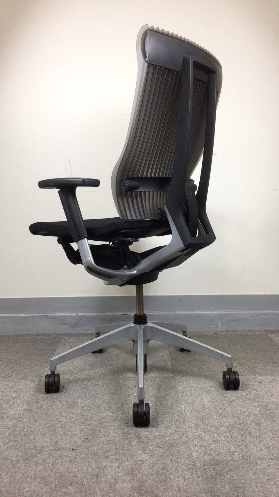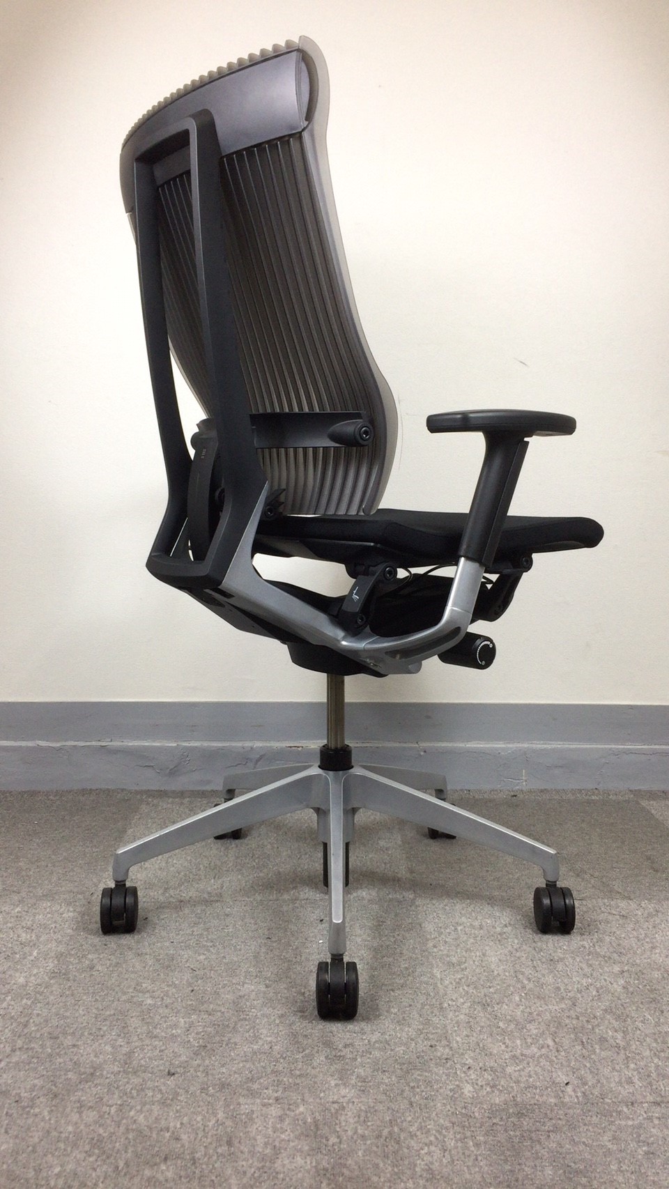 見た目は少し硬そうに見えるエラストマー素材ですが、座ってみると程よいしなり具合のやわらかな座り心地で、背中が痛くなるようなことはまるでありません。面ではなく線で支えることで、背面の通気性の良さは抜群です。