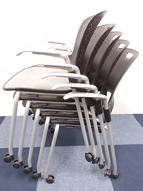 【4脚セット商品】【状態良好】ハーマンミラー ケイパーチェア 黒 メッシュ 肘付 キャスター付き あのアーロンチェアで有名なハーマンミラーのミーティングチェアです!【おすすめ】- 在庫数