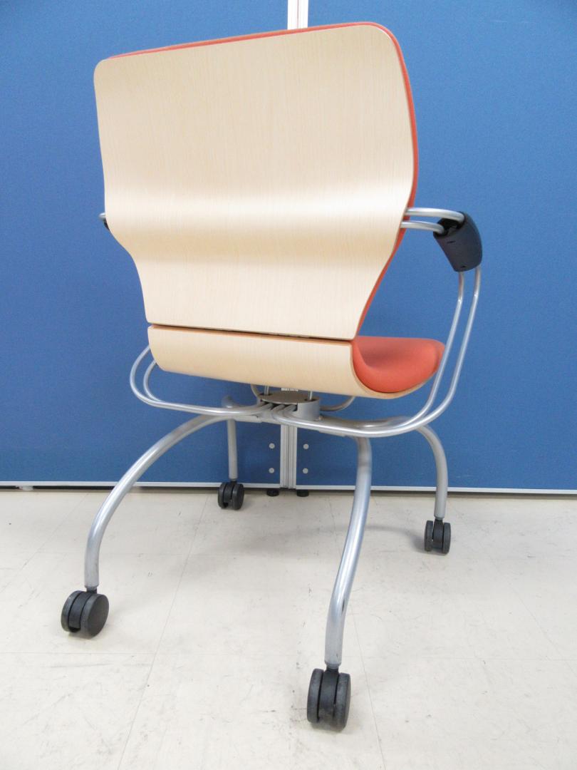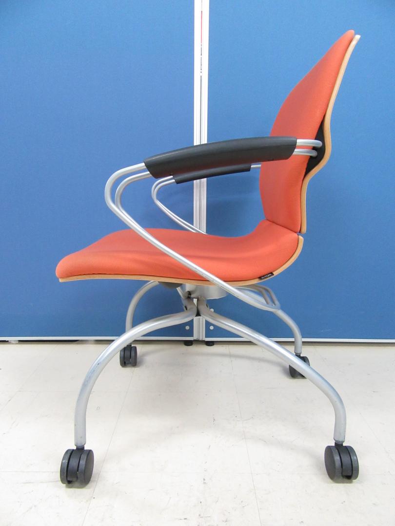 [パーシモンオレンジ]イトーキ製 ミーティングチェア シンタシリーズ■お洒落なミーティングチェアが入荷!!背面は流行のファインウォールナットです!![デザイナー:エリック・チャン]- 足立・葛飾店