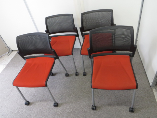 【4脚セット販売!】赤のスタッキングチェア!- 在庫数