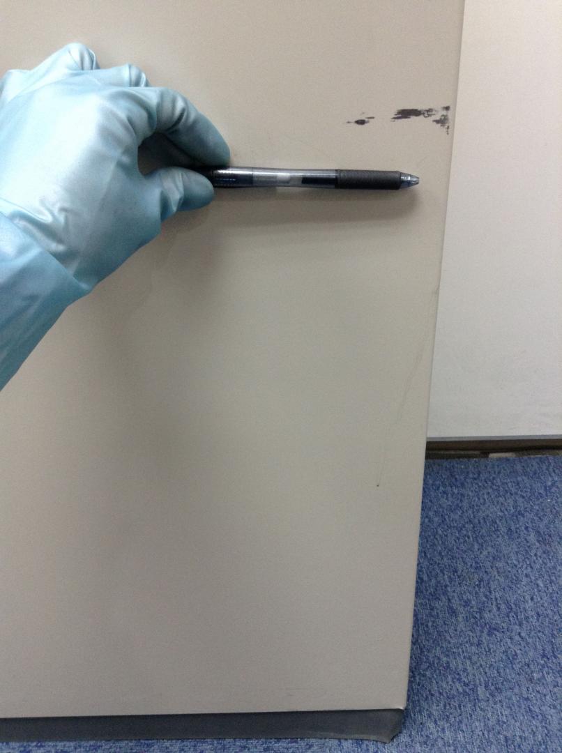 - 目立つ箇所あり傷・凹みが多数、深い傷・凹みが一部ある。(例、天板、正面、背部、サイド部分にある。)
