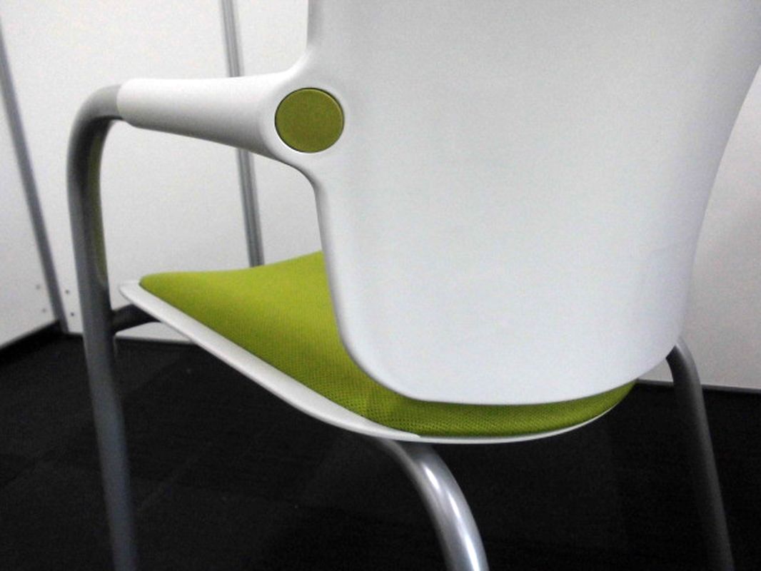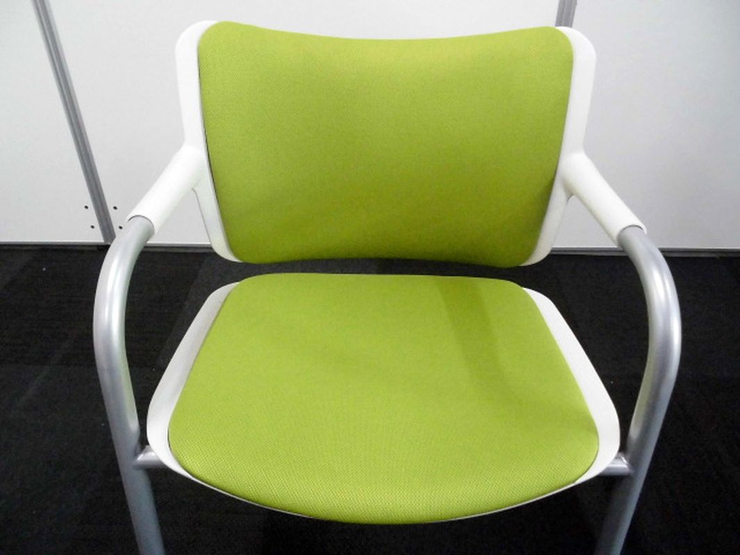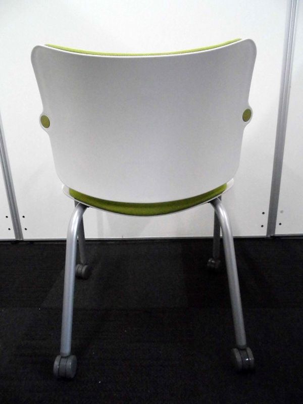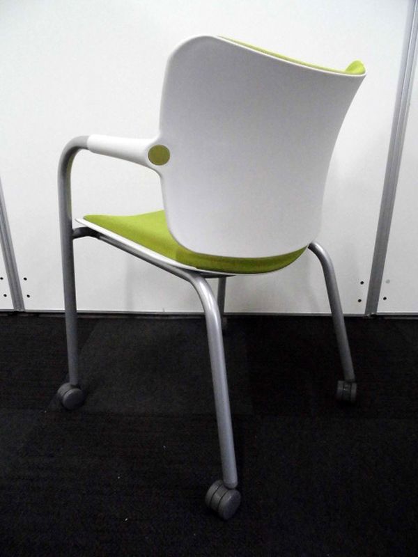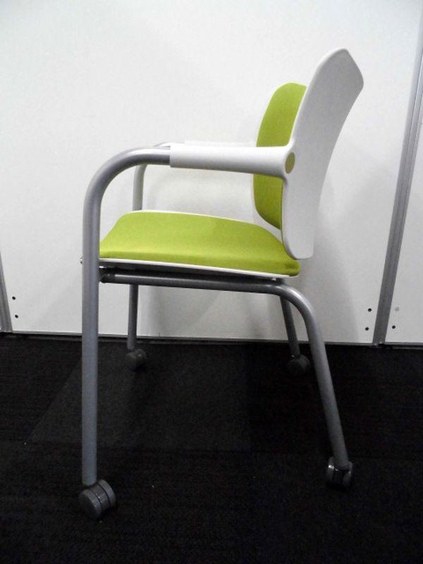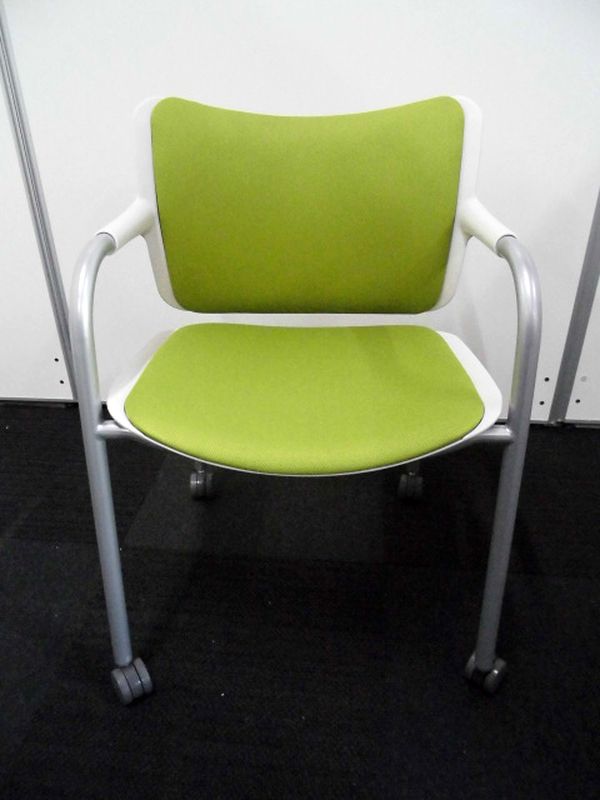 【オシャレデザイン】内田洋行|ミーティングチェア|ライムグリーン(ホワイトフレーム)【キャスター付】- 立川・八王子店