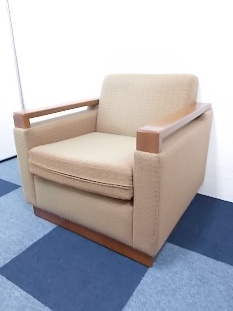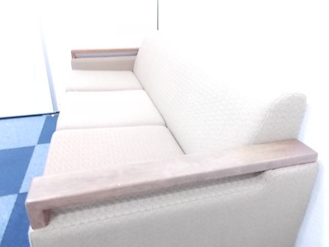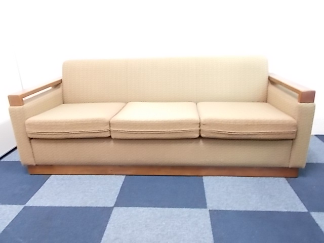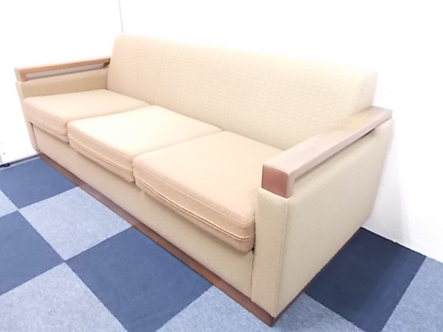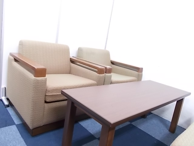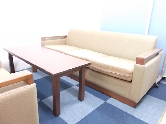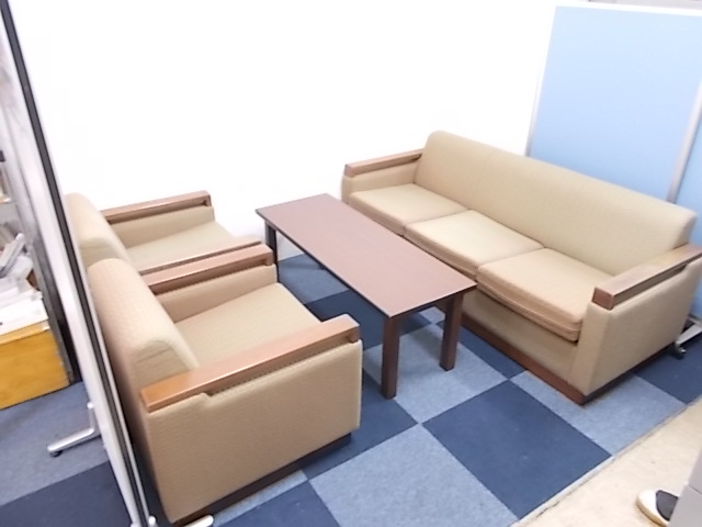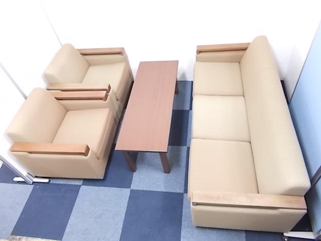 【専門業者にてクリーニング済み】内田洋行製 応接セット一式 3人用ソファー×1 アームチェア×2 センターテーブル×1 ベージュカラー- 在庫数