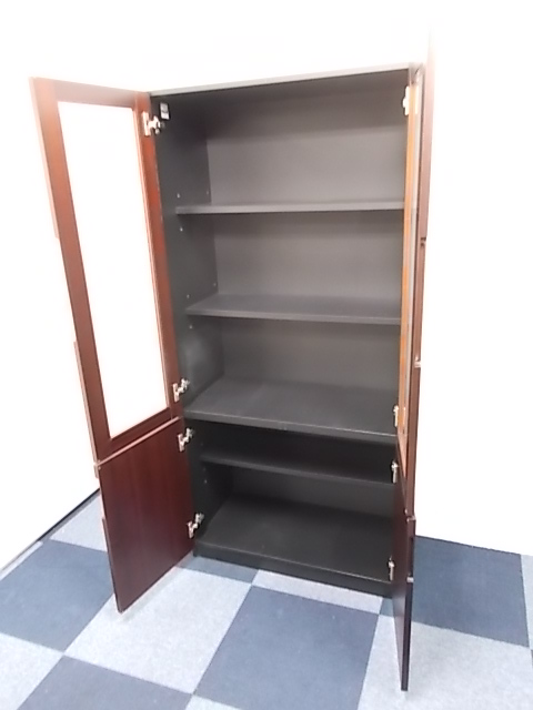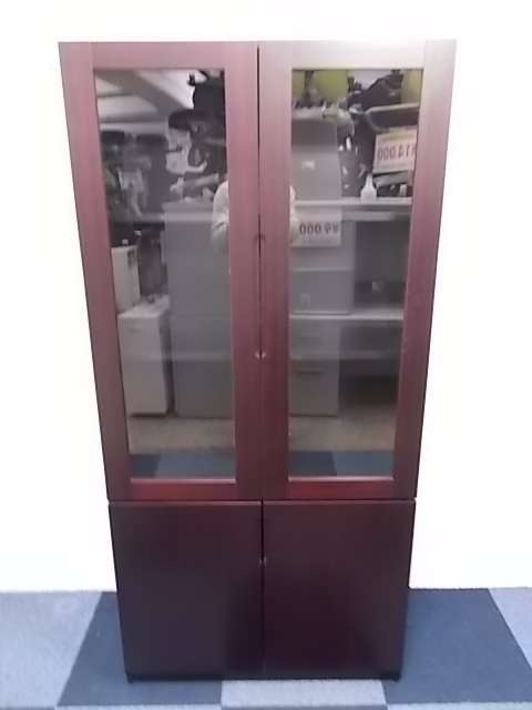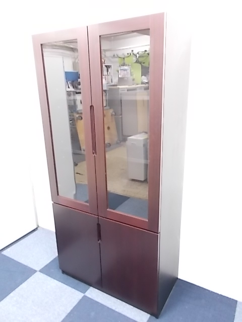 【希少品】内田洋行製 高級感あふれる役員用書棚 ガラス扉 ブラウンカラー- 在庫数