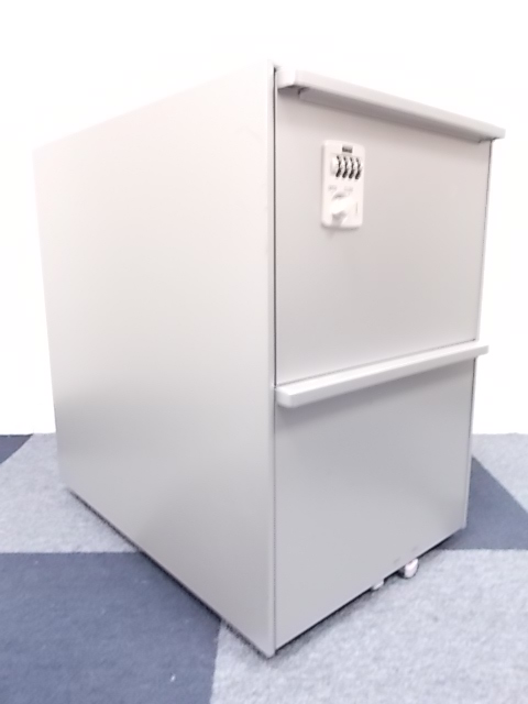 【ワゴンセール今がお買い得!!】内田洋行製 DTシリーズ たたずまいもスタイリッシュ! ダイヤル錠式2段ワゴン、シルバー色!- 在庫数