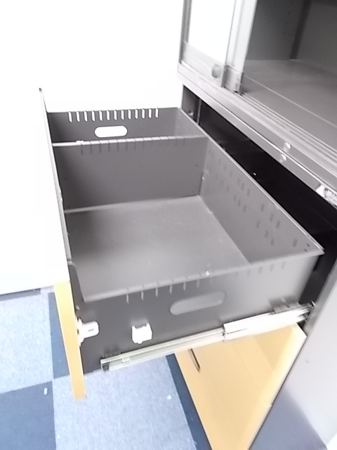 - 一部不具合ありそ引出の開閉不可、施錠不可、棚板無しといったの書庫の本来の効用を果たすための機能以外の一部が使用不可(例、扉、引出の開閉がしづらいなどがある。 )