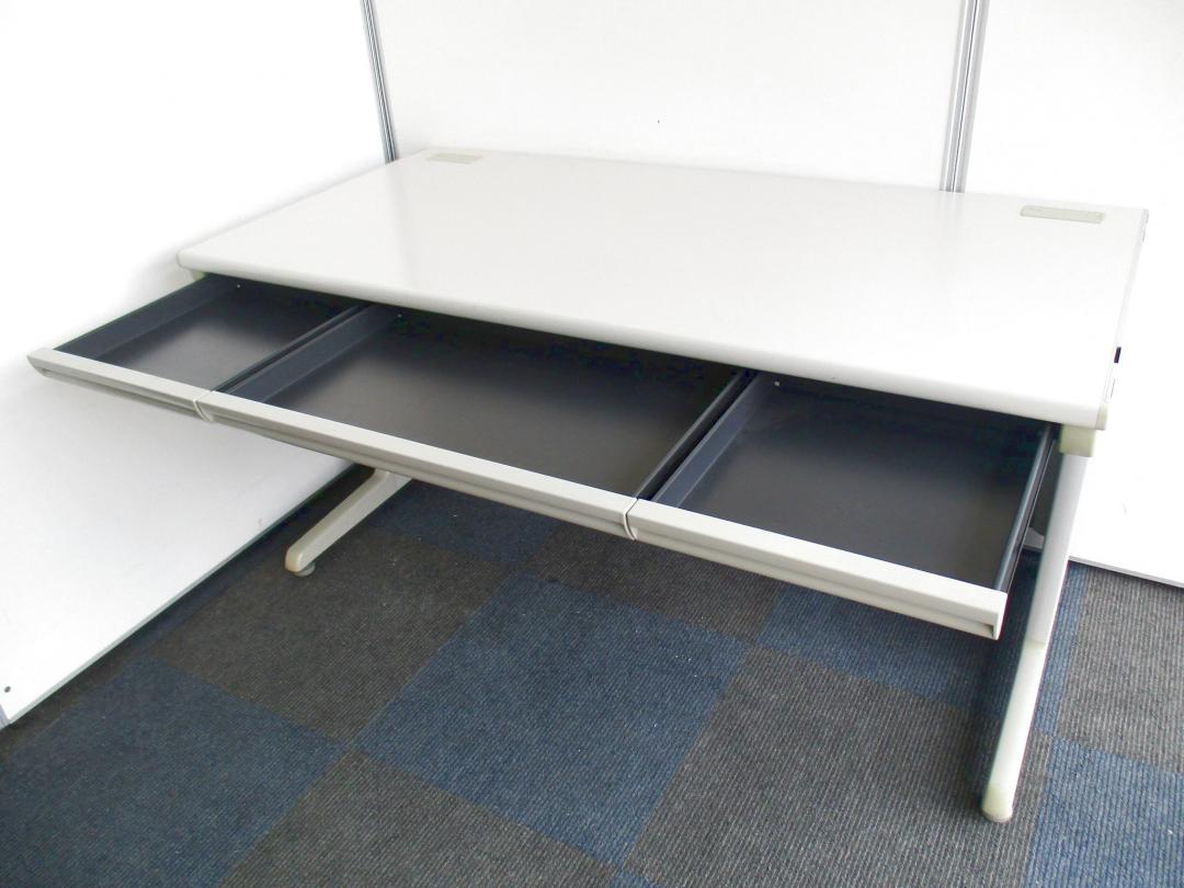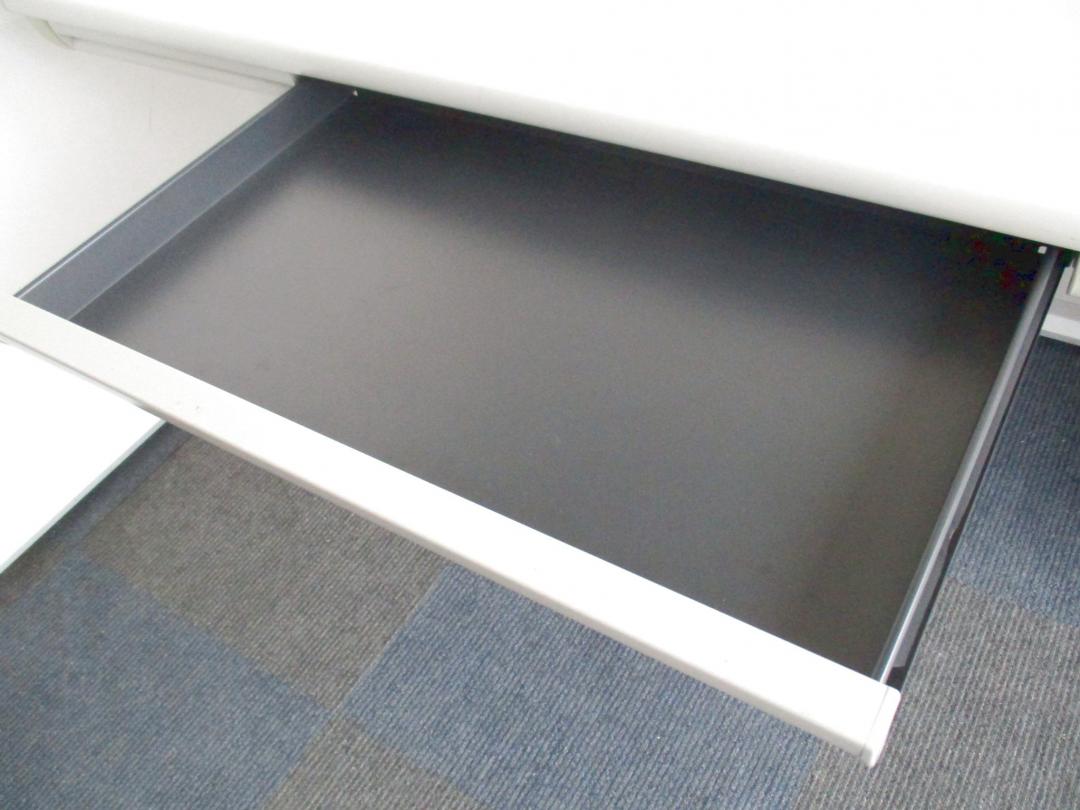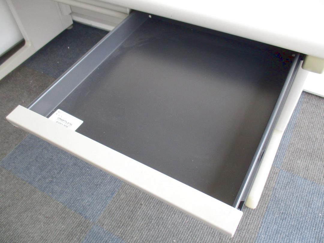 - 袖机のワゴンは、最下段がロング引出しになっており、従来より収納力120%アップ。