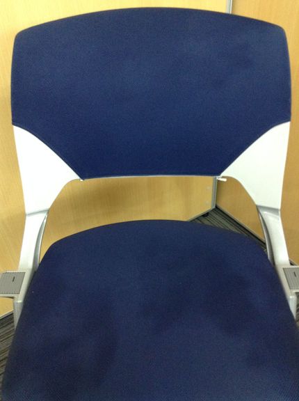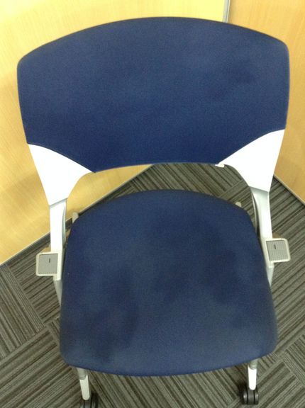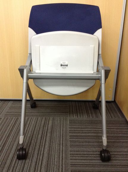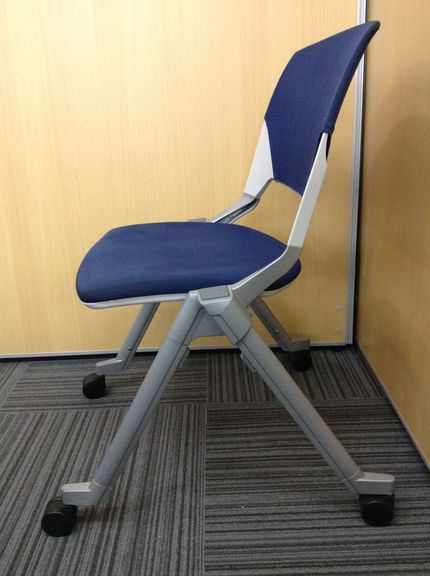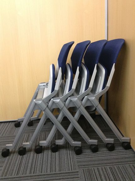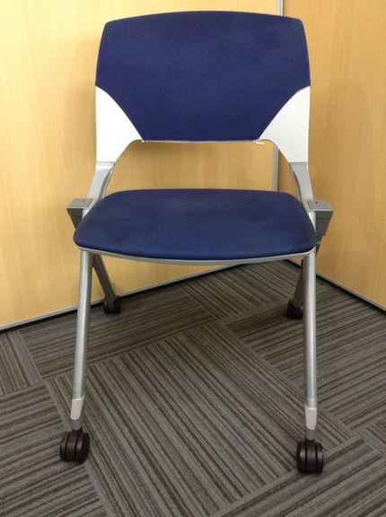 【12脚入荷!】内田洋行製スタッキングチェア|2018年製|キャスター付で移動もらくらく! 中古 ネスティング可能 ブルー ロット 会議室 【倉庫在庫品】