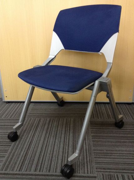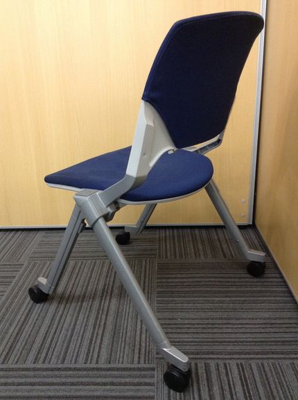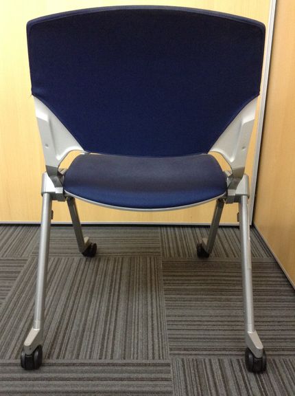 【平行収納、重ねての収納どちらも可能な珍しい仕様のミーティングチェア!】■ウチダ(UCHIDA)製 FM-320シリーズ スタッキングチェア ネスティングチェア 肘無し キャスター付 ■ダークブルー【AD】