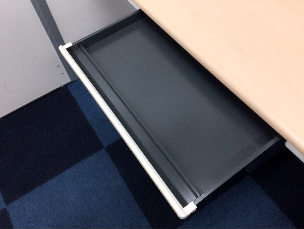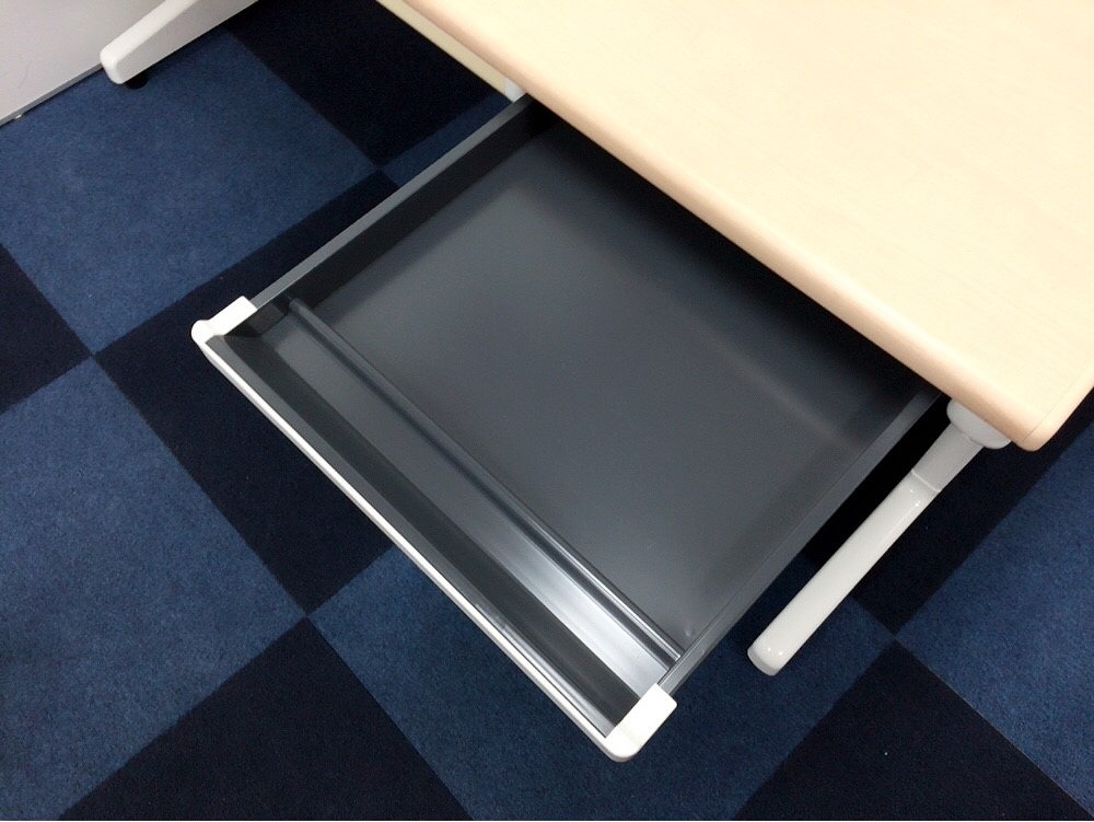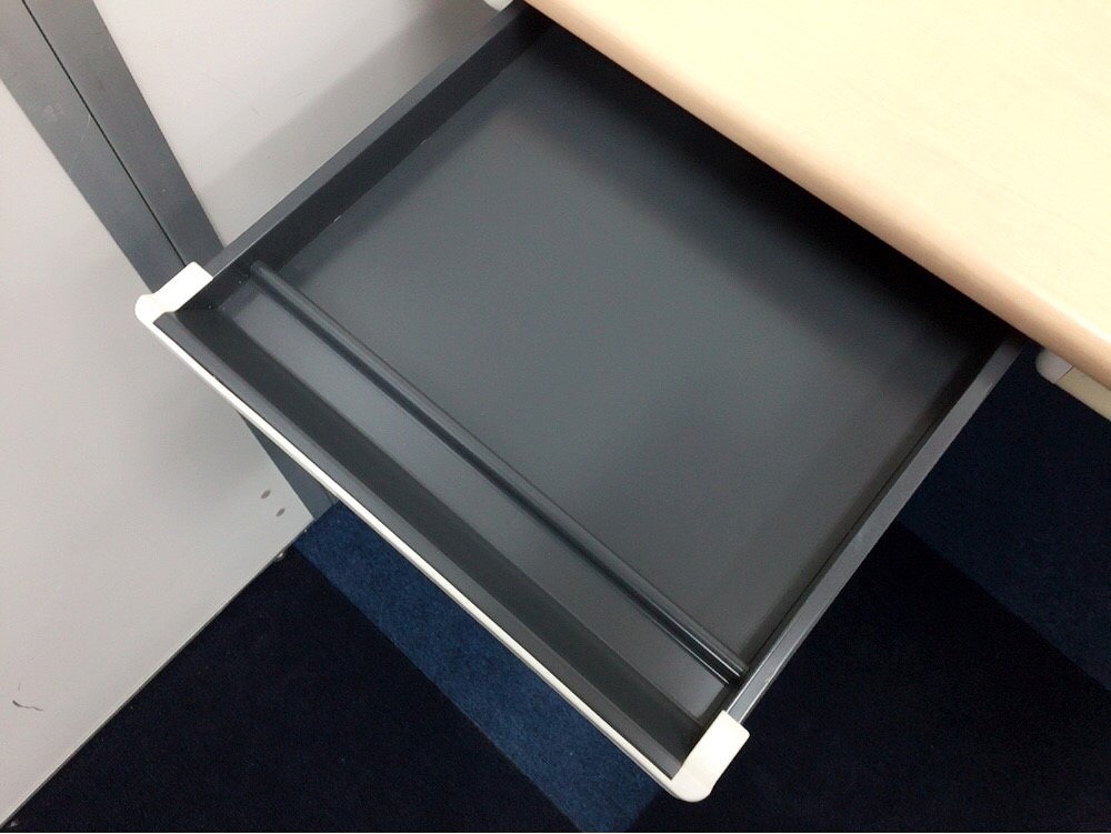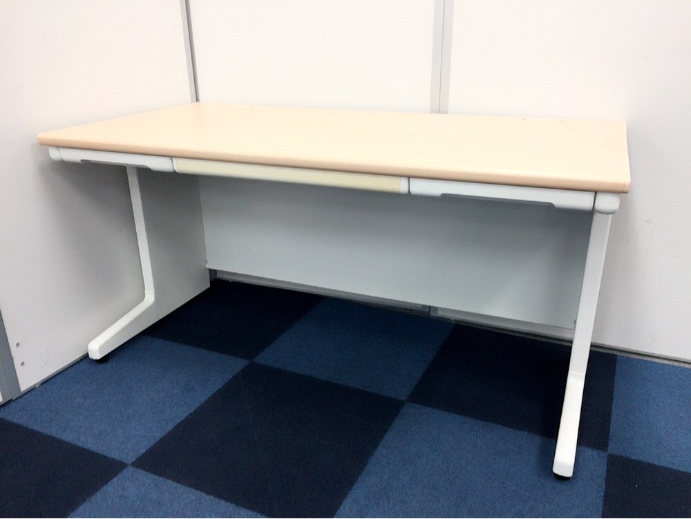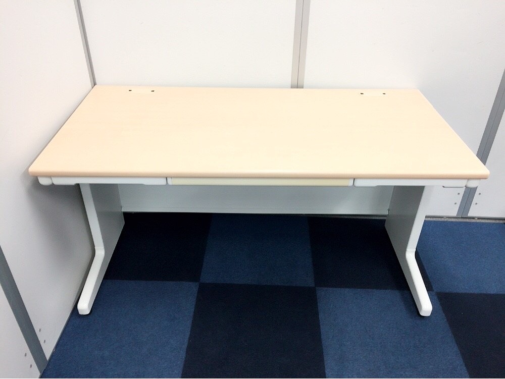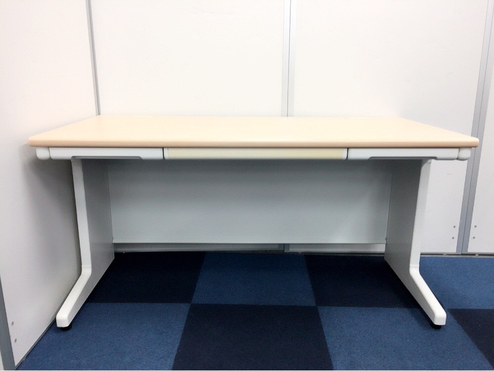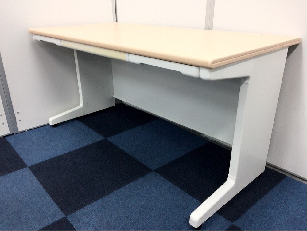 【お洒落なカラーのオフィス机】幅1400の使い勝手の良いプラス製ナチュラルカラー平机大量入荷!【明るいオフィス作りに】- 在庫数