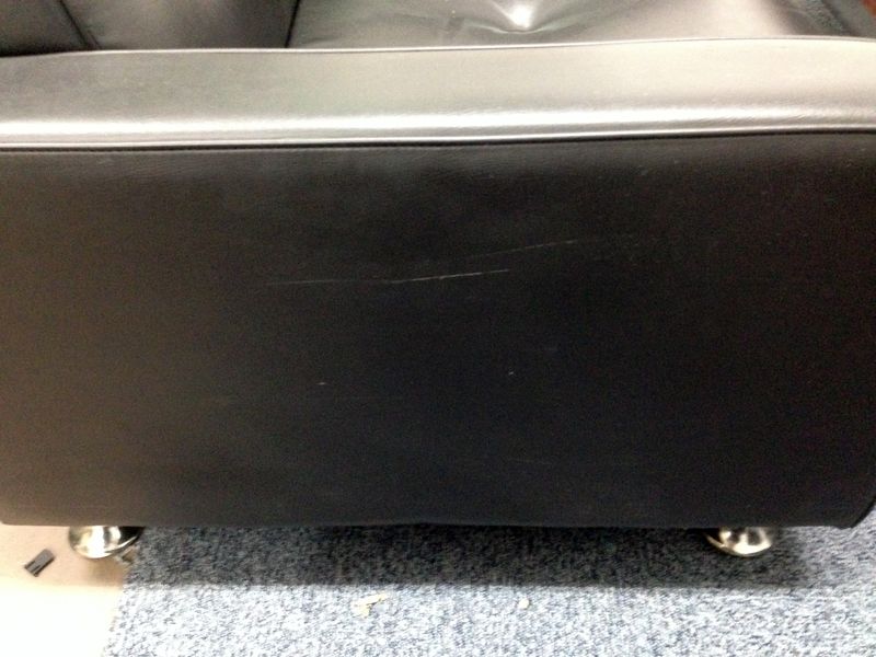 - あり黄ばみ・変色が広い範囲にうっすらある、または濃い黄ばみ・変色が一部ある。(例:三人用ソファ、二人用ソファ、一人用ソファの場合、背もたれ、肘かけ、座面等、 センターテーブルの場合、天板、脚にある。)