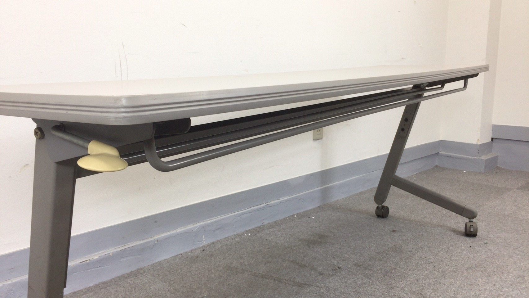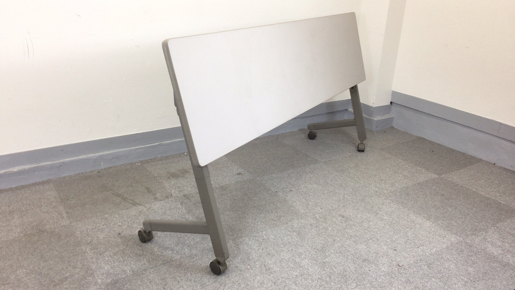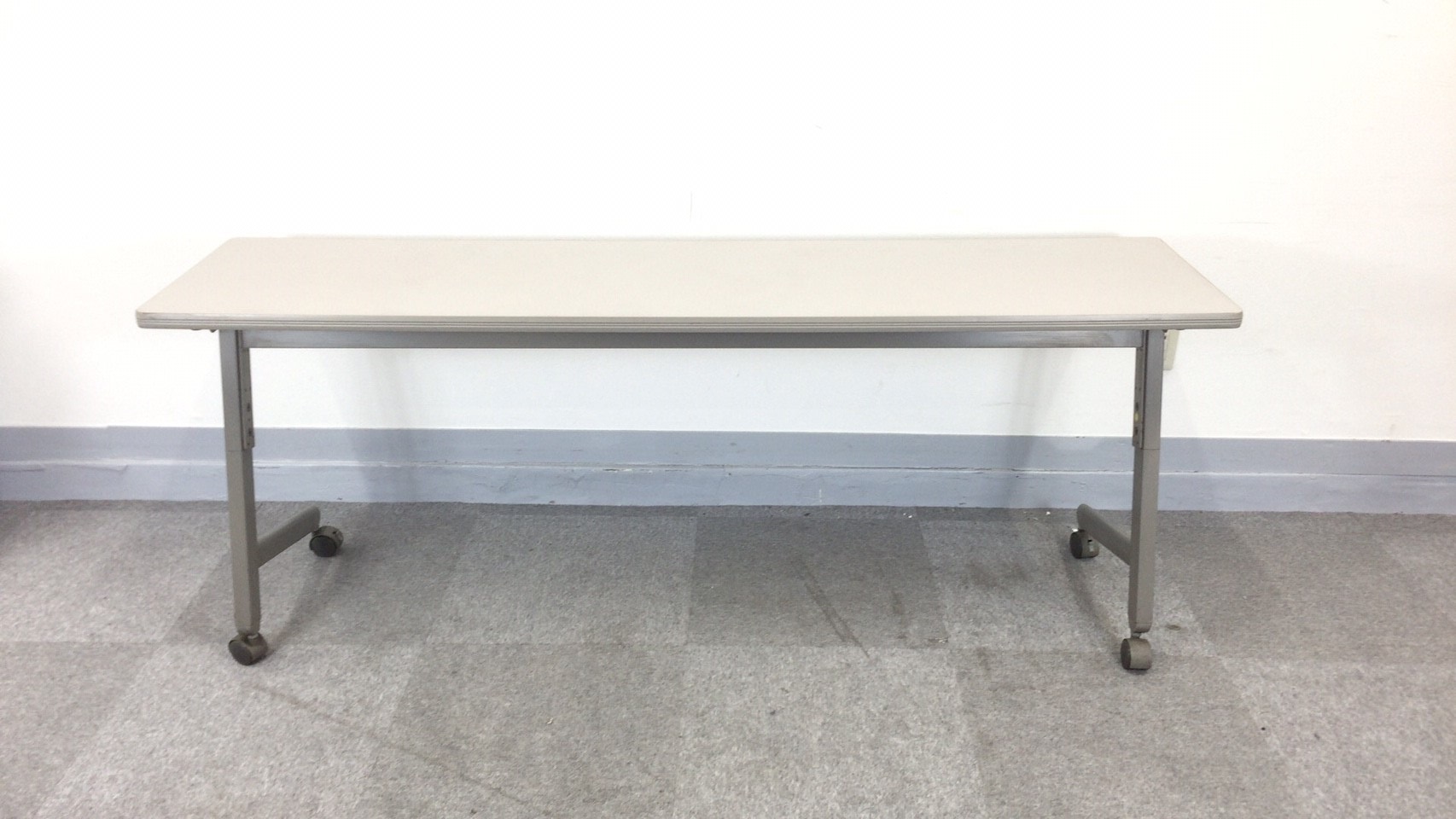 【KS】[セミナー、会議に最適!]幅1800㎜ 天板折り畳み式 キャスター付き テーブル- 茨城南店