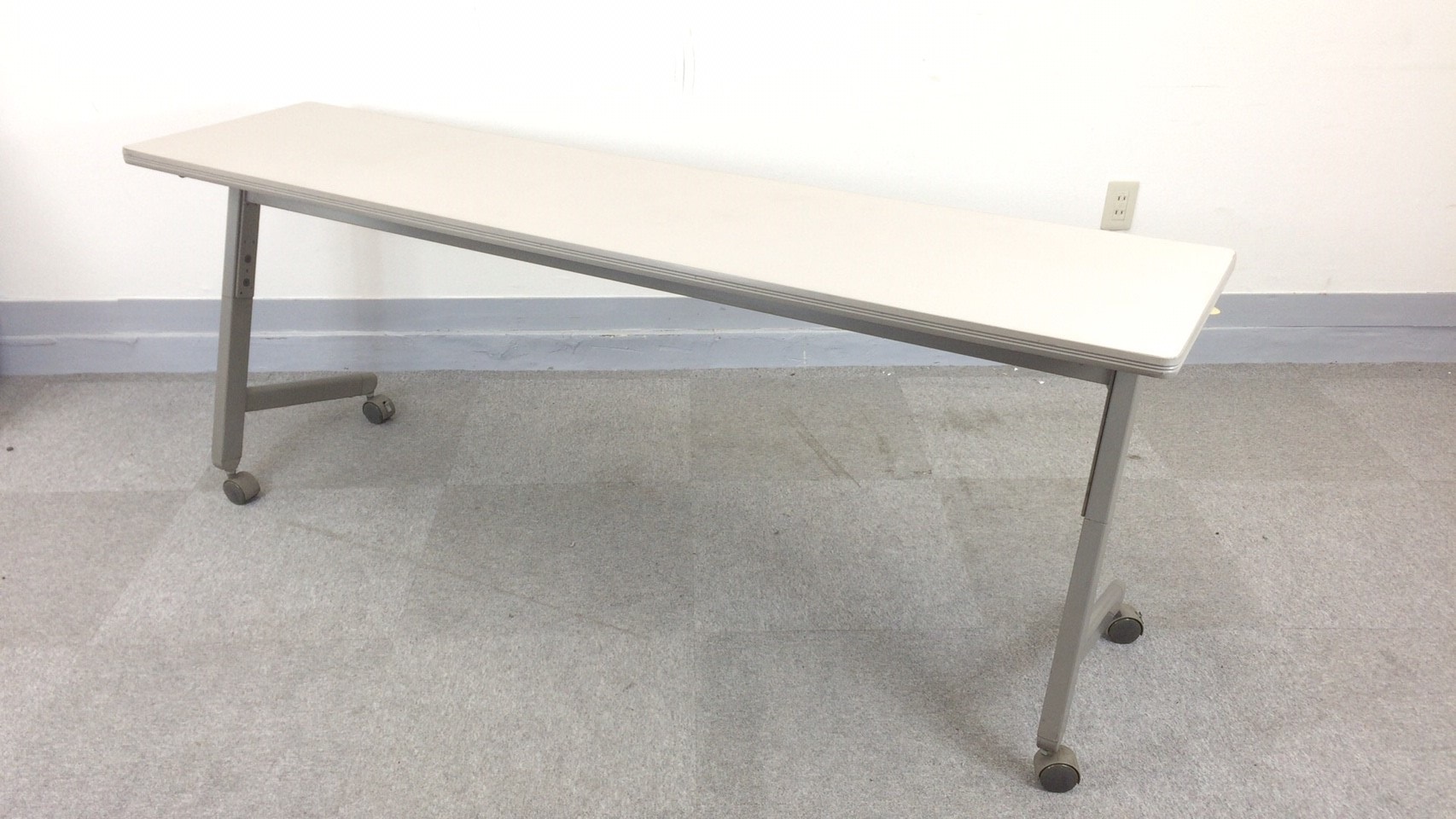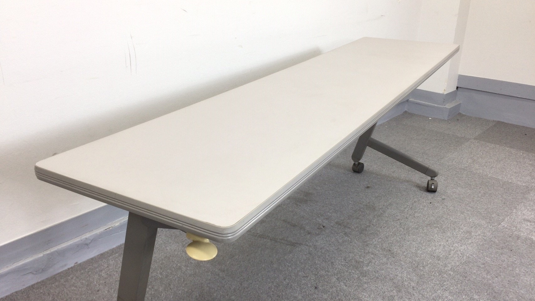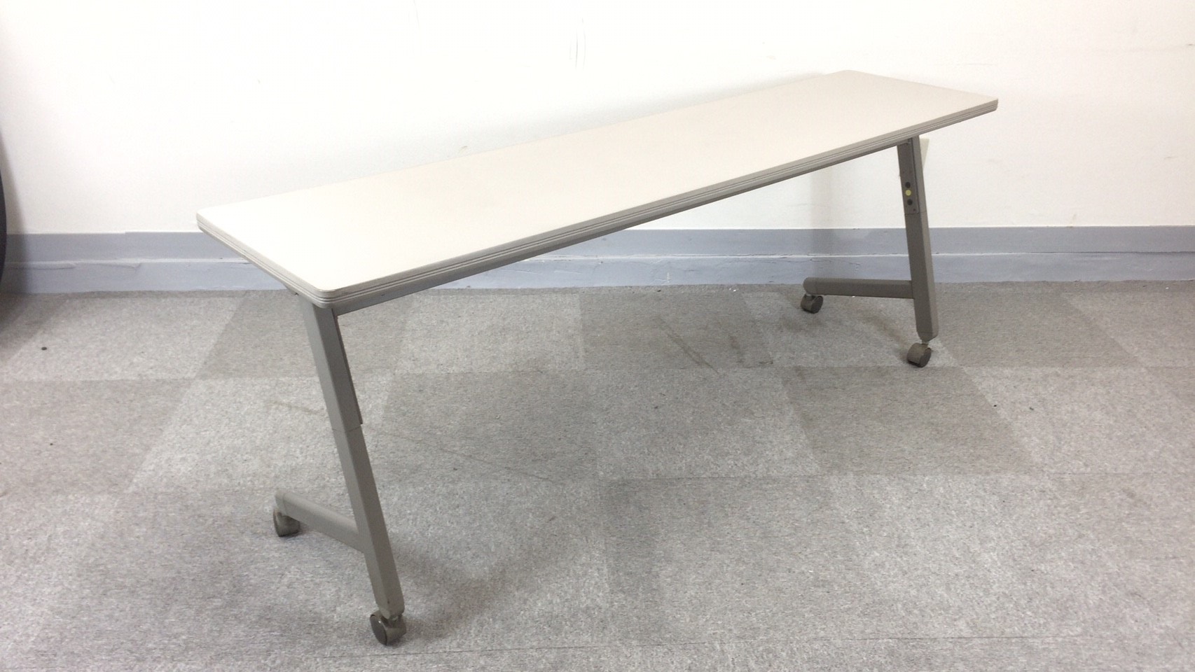 【KS】[セミナー、会議に最適!]幅1800㎜ 天板折り畳み式 キャスター付き テーブル- 茨城南店