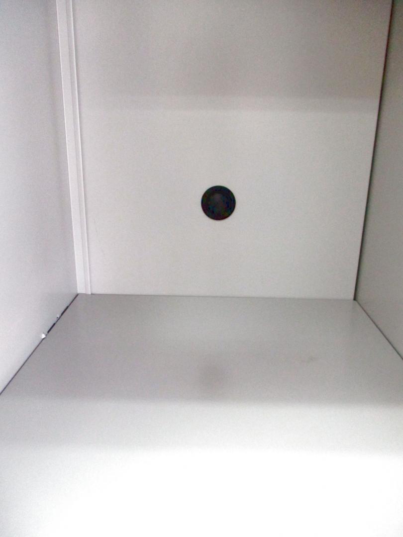 ロッカー裏面には配線を通す穴が開いているので電源タップを通せば
