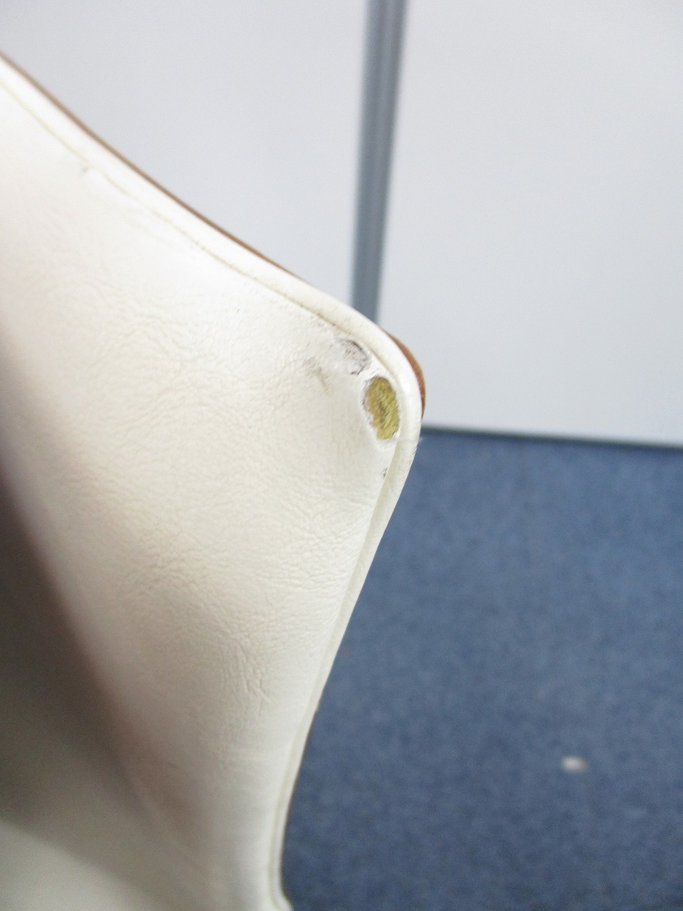 - かなり強い濃い黄ばみ・変色が商品全体にある。(例、座面・背もたれ、脚部等にある。)