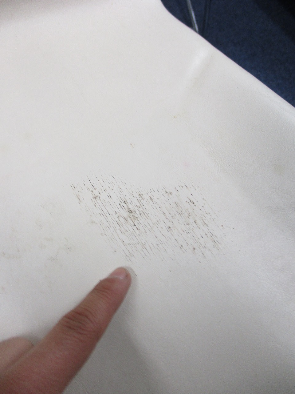 - あり黄ばみ・変色が広い範囲にうっすらある、または濃い黄ばみ・変色が一部ある。(例、座面・背もたれ、脚部等にある。)