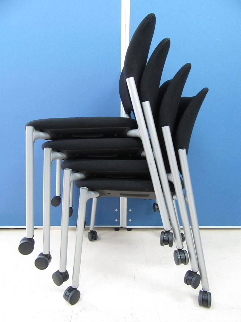 [4,000円⇒1,500円]岡村製作所製 スタッキングチェア ブラック 8147シリーズ■使用しない時は、重ねて収納可能です!![おつとめ品]- 足立・葛飾店