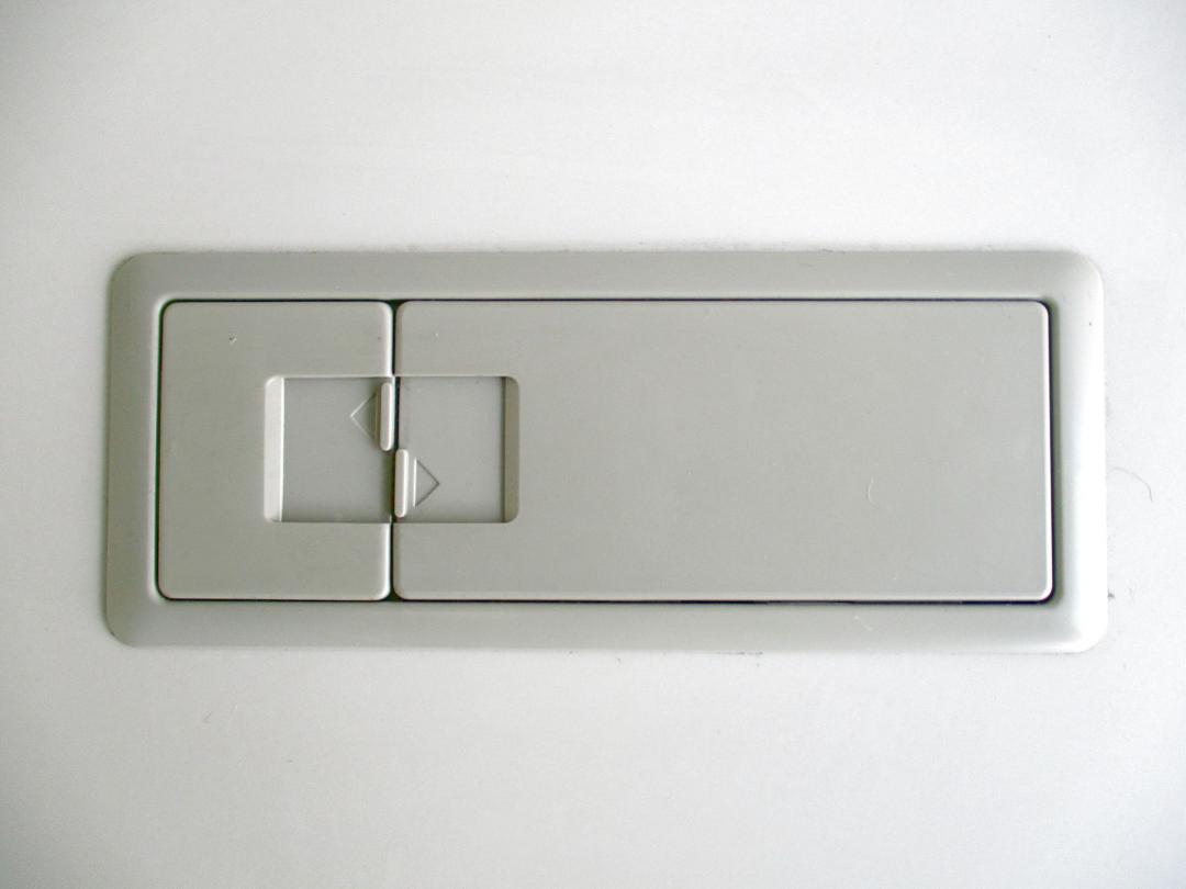 - 天板にコードホールが2ヵ所あり、レイアウト自在です。天板と幕版の間に30mmのすき間があり、対向配線も容易です。