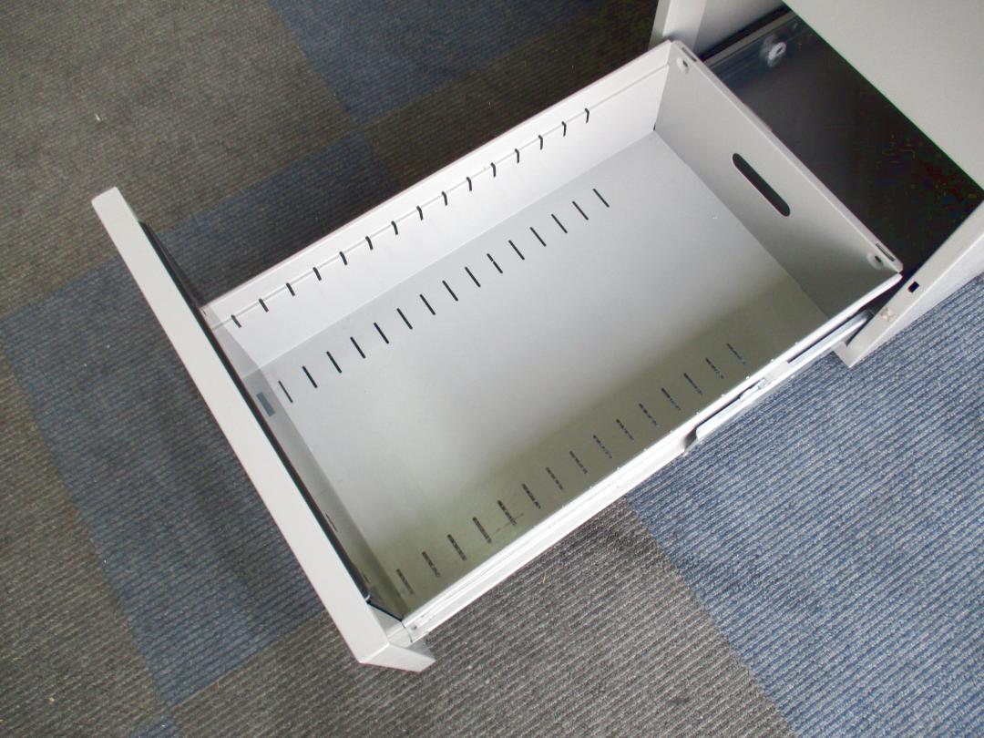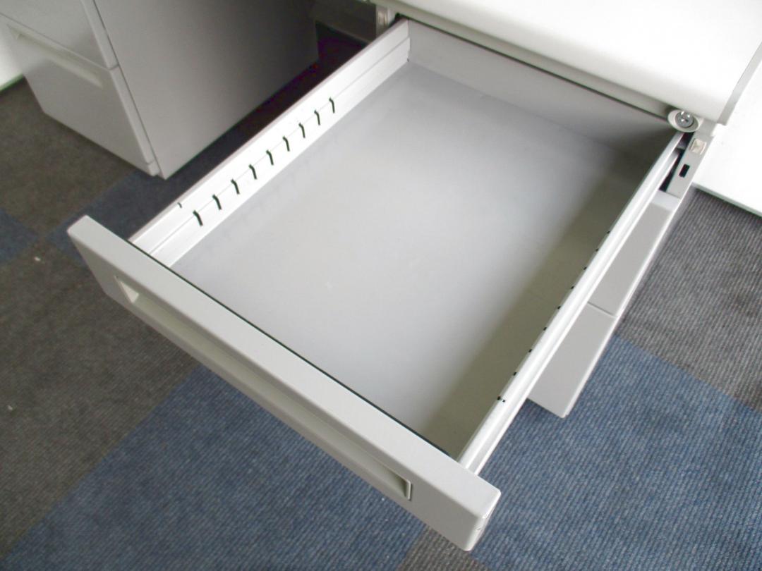 - シンプルながらも使いやすい工夫があります。ロックは、一度の施錠ですべての引出しの鍵がかかるオールロック機構。