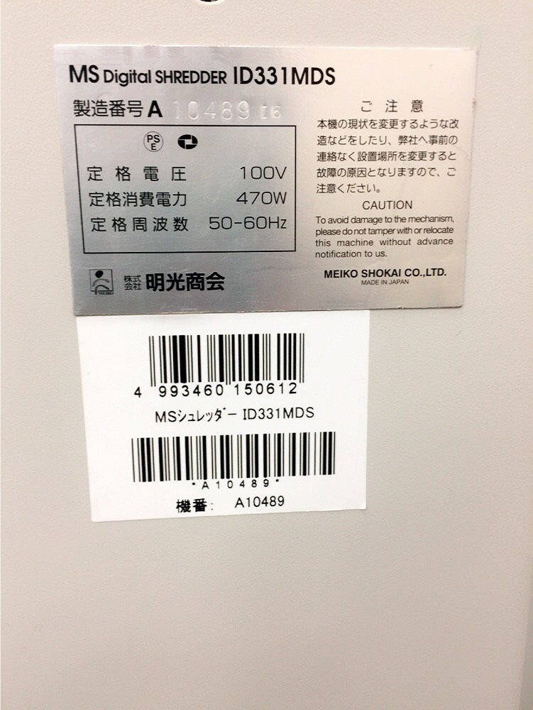 【中古】 MS-ID331MDS 明光商会 シュレッダー 187278