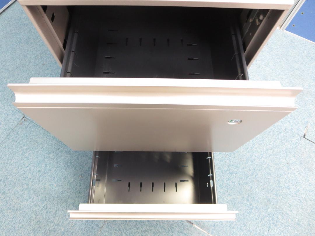 - 一部不具合ありその脇机・ワゴンの本来の効用を果たすための機能以外の一部が使用不可な状態。(例、引出が開閉しづらい、 キャスターロック機能使用不可、ラッチ不良 等がある。)