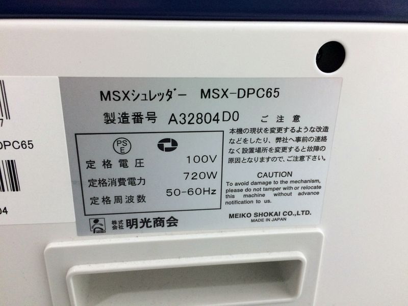 【中古】 MSX-DPC65 明光商会 シュレッダー 187424